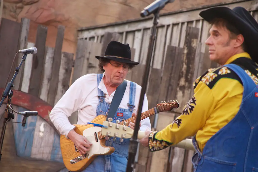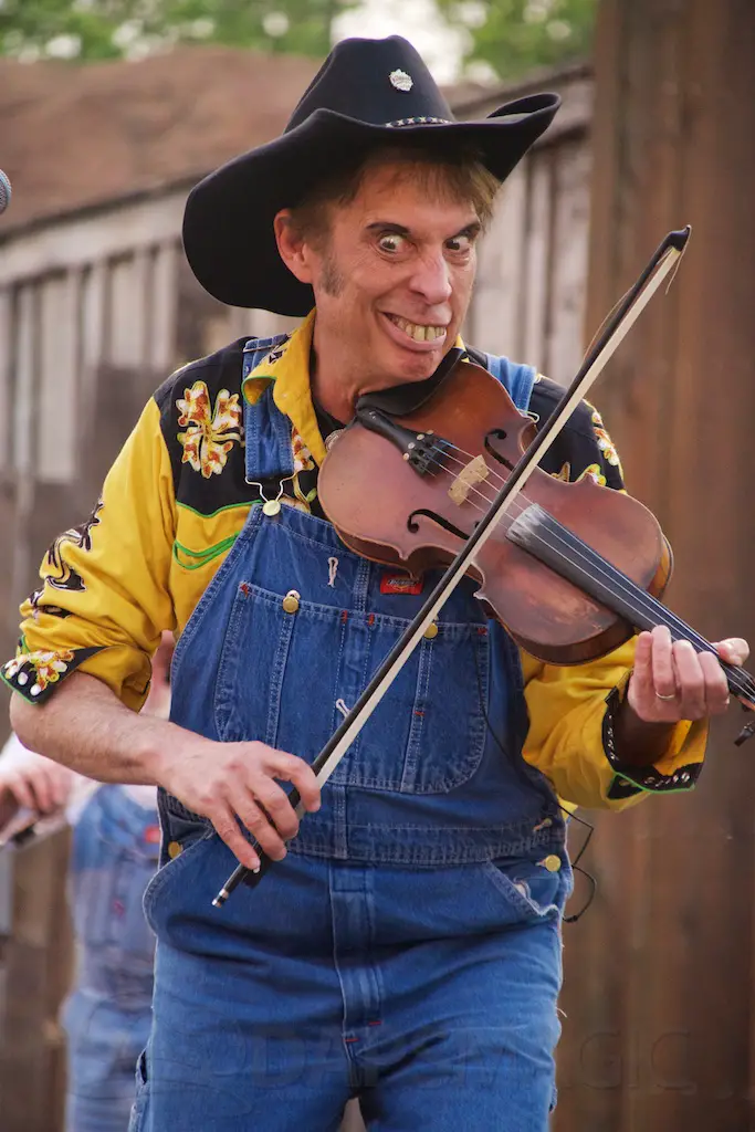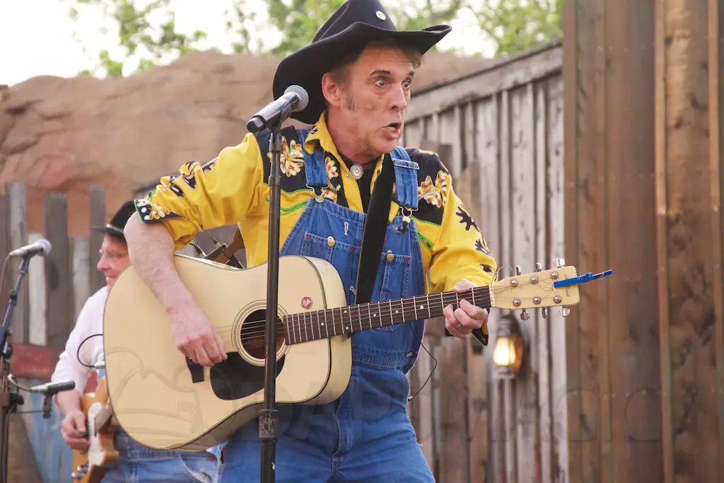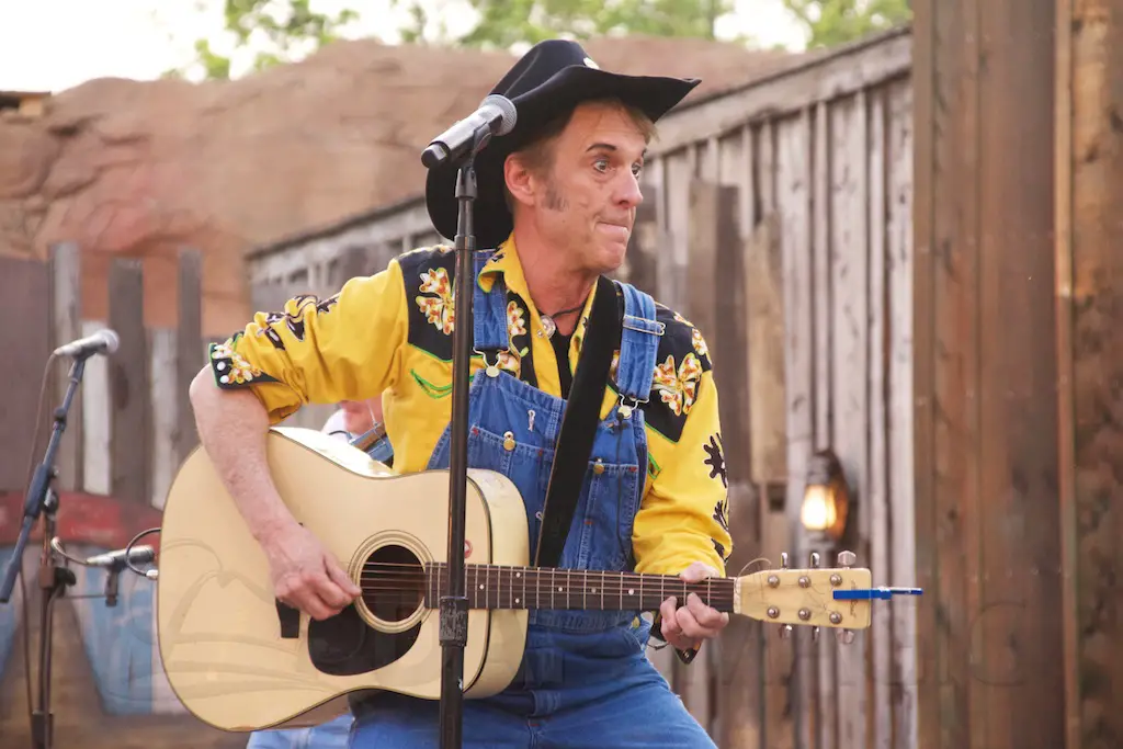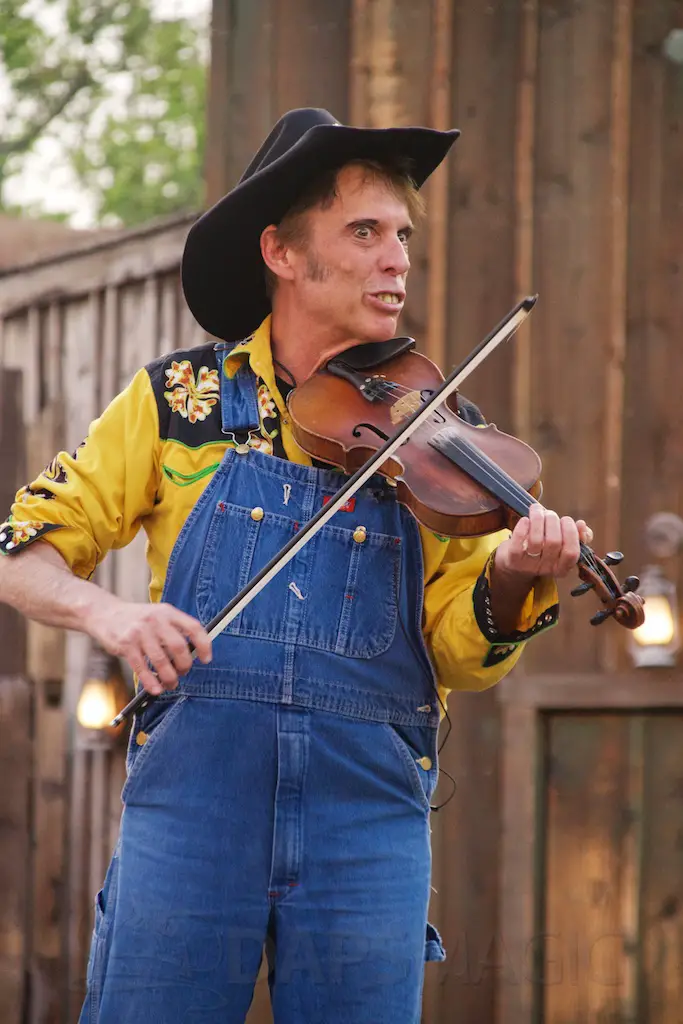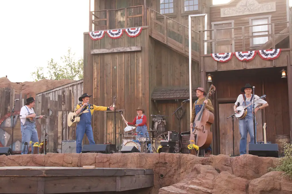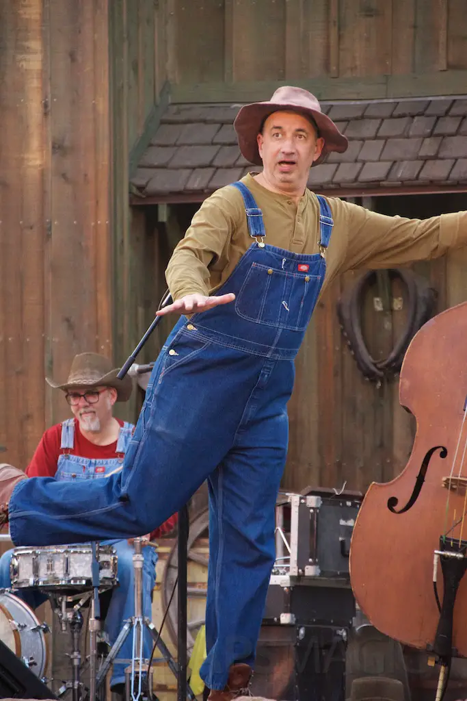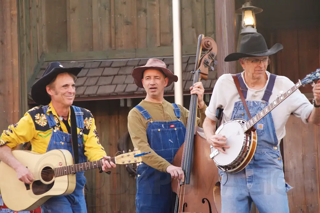 At night is Krazy Kirk and the Hillbillies, a comedic bluegrass band that has hands clapping and people laughing. They are located at the Wagon Circle Theater, which has the stunt show during the daytime. It feels like a concert especially when they perform rock songs with fiddly stylings.