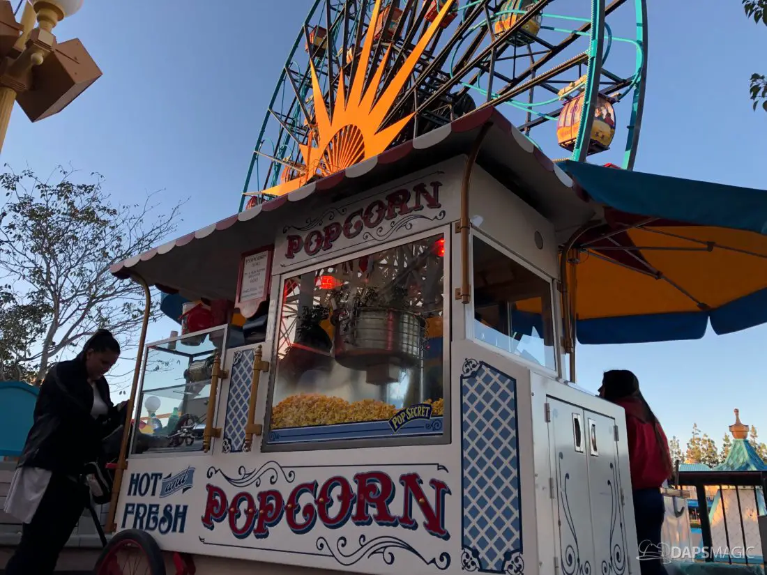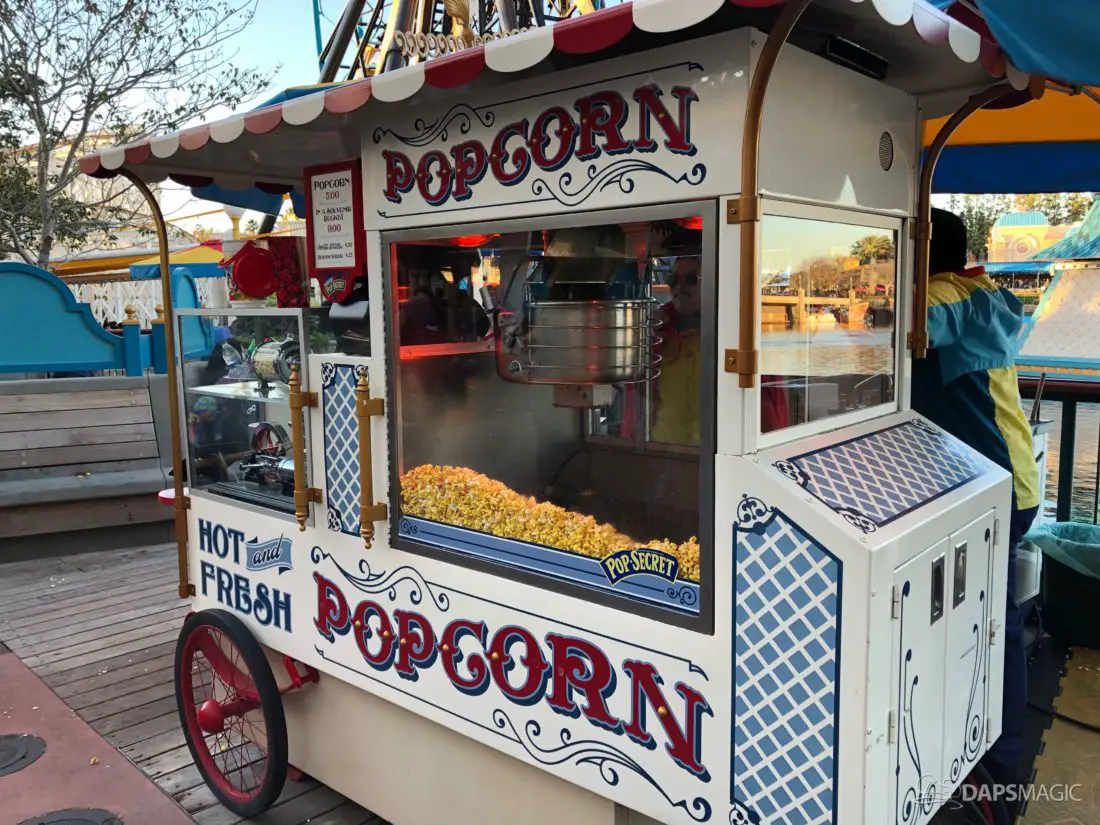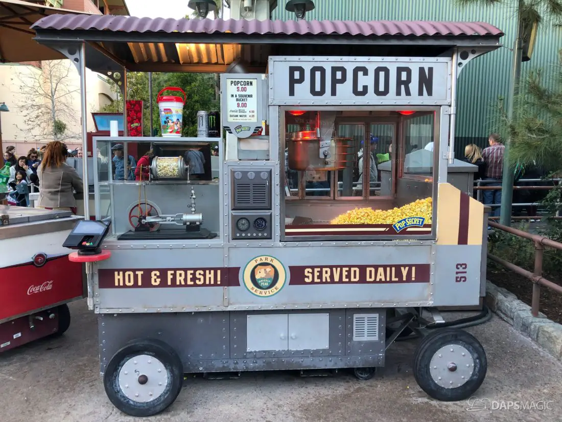 Disney California Adventure has three popcorn carts that equally fit into each of their respective lands. I, however, am not including the popcone Cozy Cone as it is not a cart.