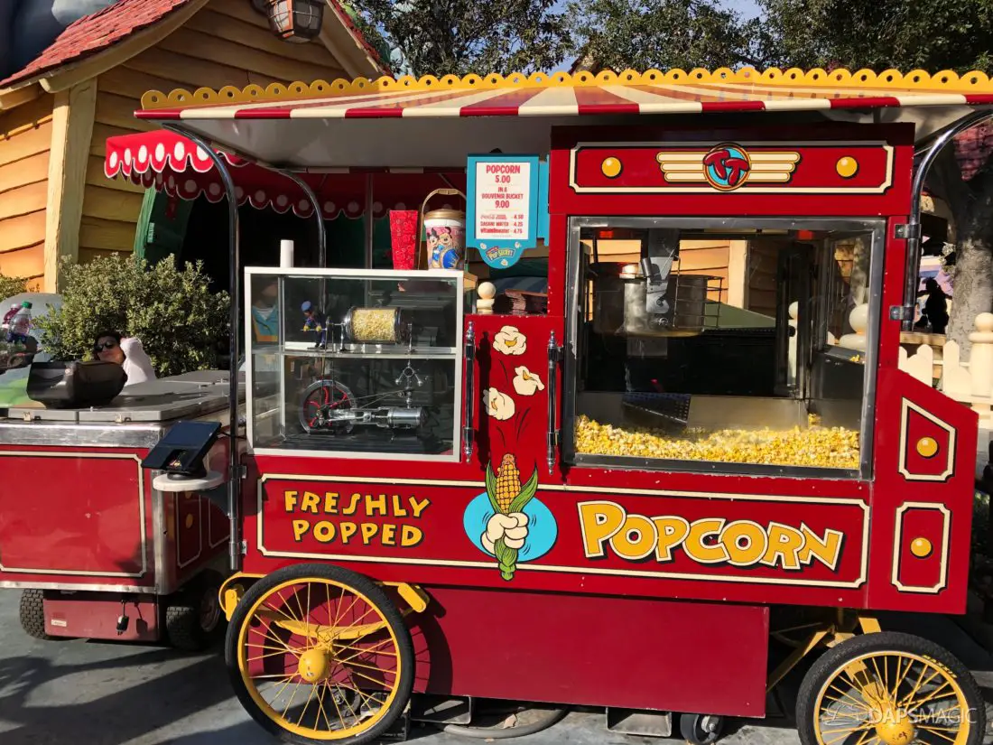 It’s no surprise that Disney is a master of detailed thematic elements in its parks. Whether it is the details in the lands, attraction queues, or even food carts, Disney truly stands out when it comes to attention to detail. The popcorn carts of the parks are no exception. Here, we’ll take a look at the design elements of the Disneyland Resort popcorn carts, and how each of them are so unique.