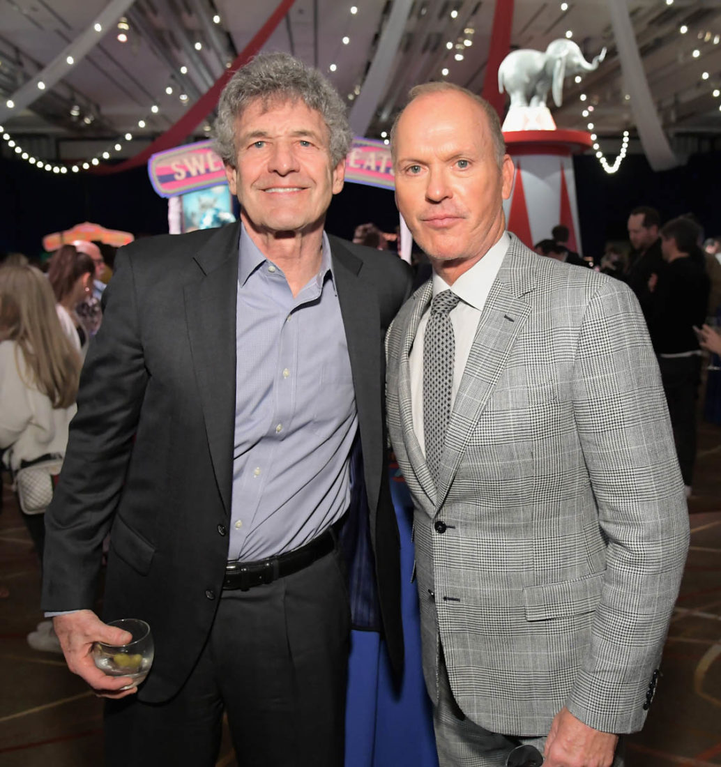 LOS ANGELES, CA – MARCH 11: Chairman, The Walt Disney Studios, Alan Horn (L) and actor Michael Keaton attend the World Premiere of Disney’s “Dumbo” at the El Capitan Theatre on March 11, 2019 in Los Angeles, California. (Photo by Charley Gallay/Getty Images for Disney) *** Local Caption *** Michael Keaton; Alan Horn