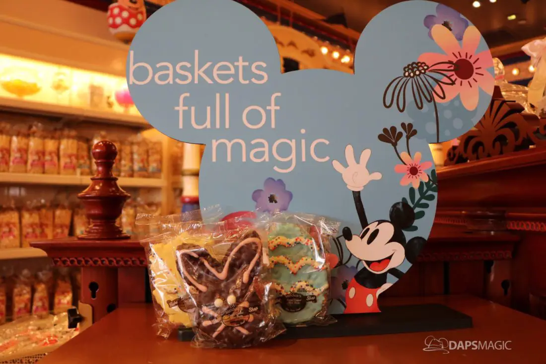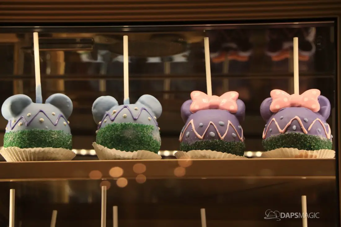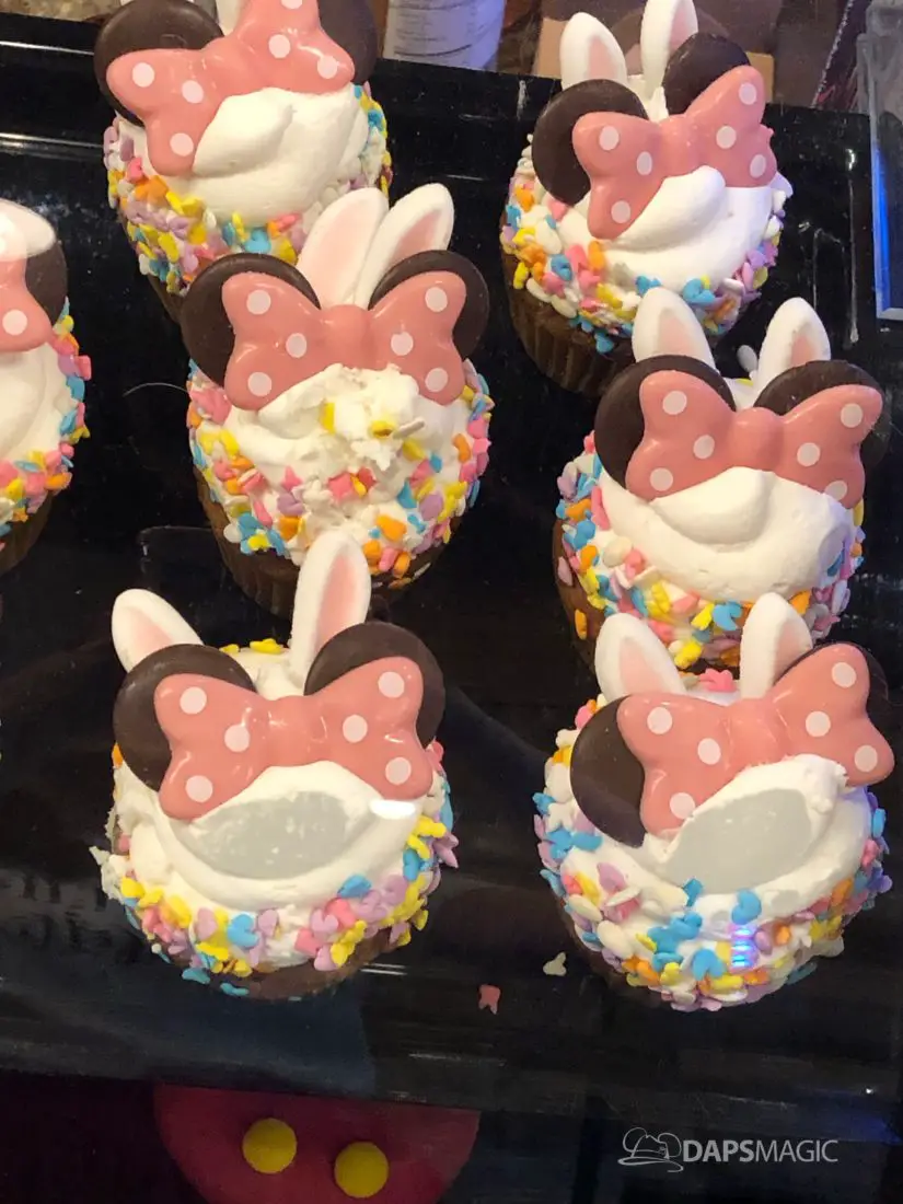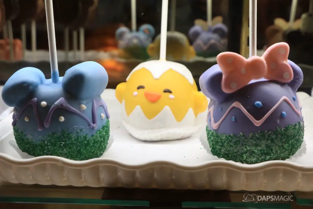 And of course there are special Easter-themed treats! They’re the perfect addition for any Easter basket! Three specialty themed caramel apples are available to purchase. One looks like a baby chick hatching, the other two are Mickey and Minnie eggs. There is also a special baby chick cake pop, as well as some pre-packaged rice krispy treats. You can find these treats at Candy Palace on Main Street, Pooh Corner in Critter Country, Trolley Treats on Buena Vista Street, Bing Bong’s Sweet Stuff in Pixar Pier, and Marceline’s Confectionery in Downtown Disney. There is also a Minnie themed Easter Bunny cupcake at White Water Snacks at the Grand Californian.
