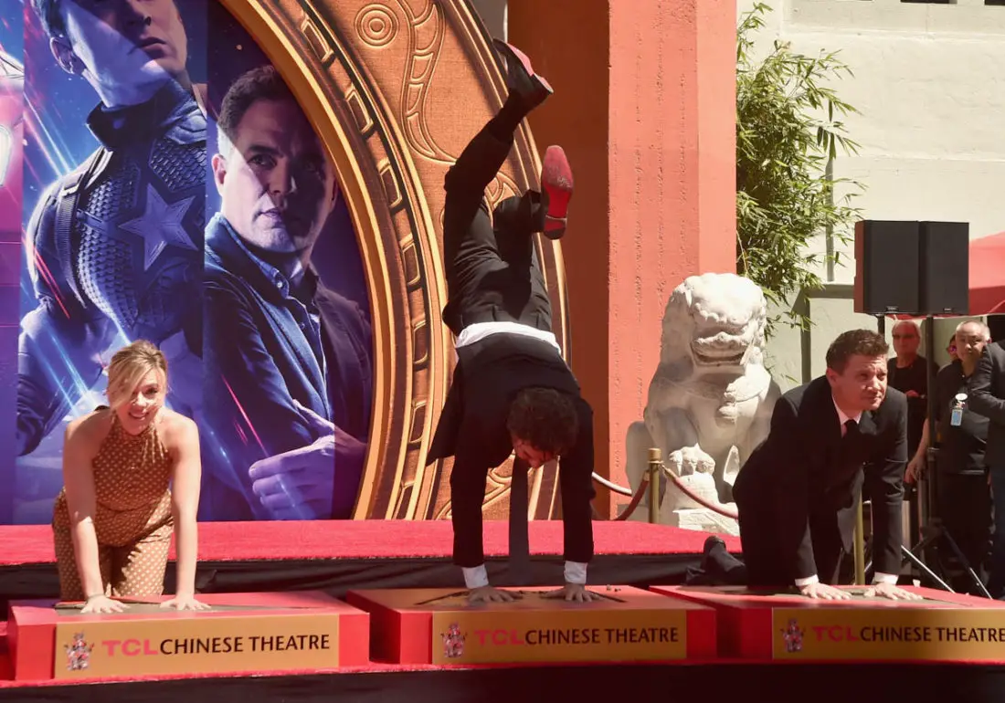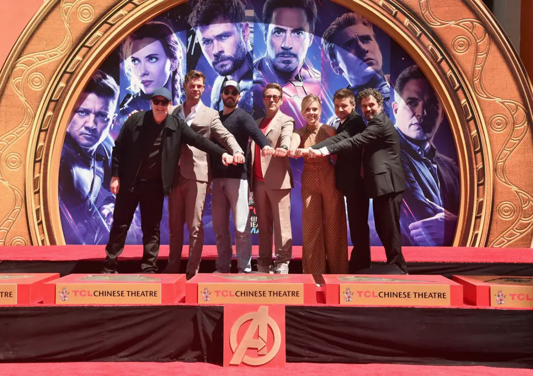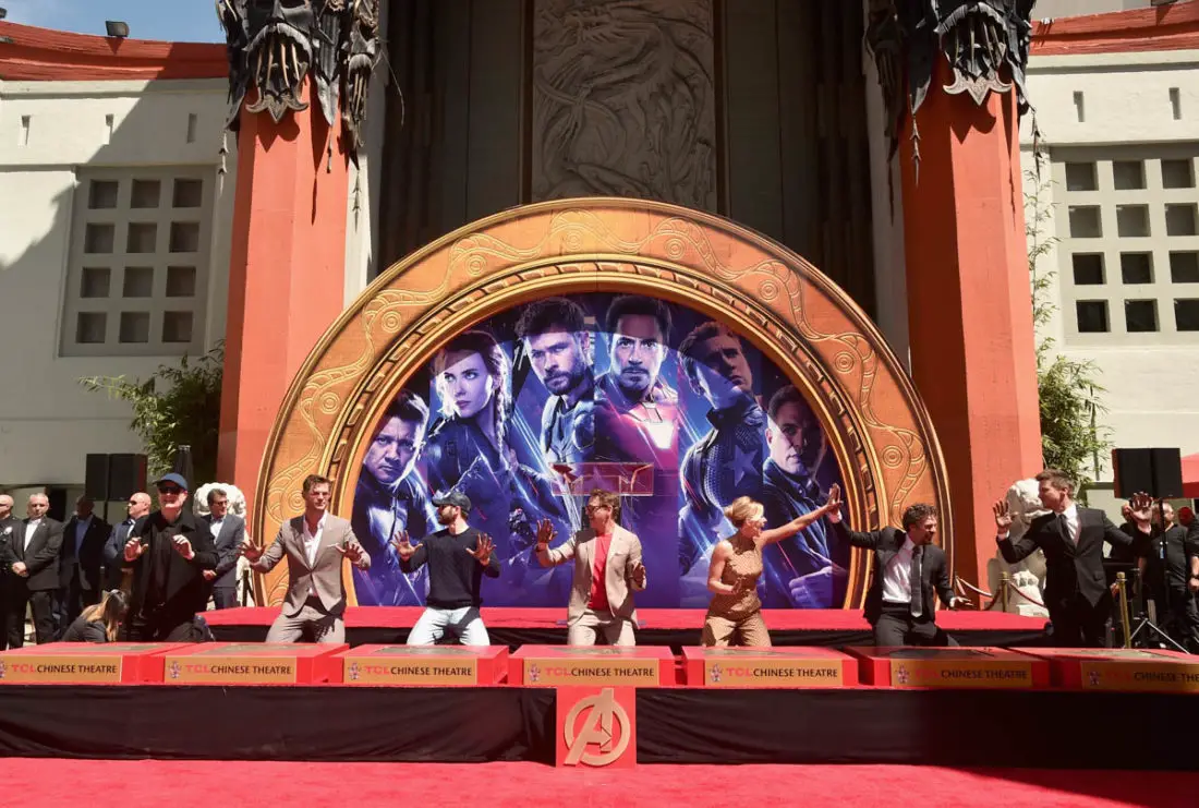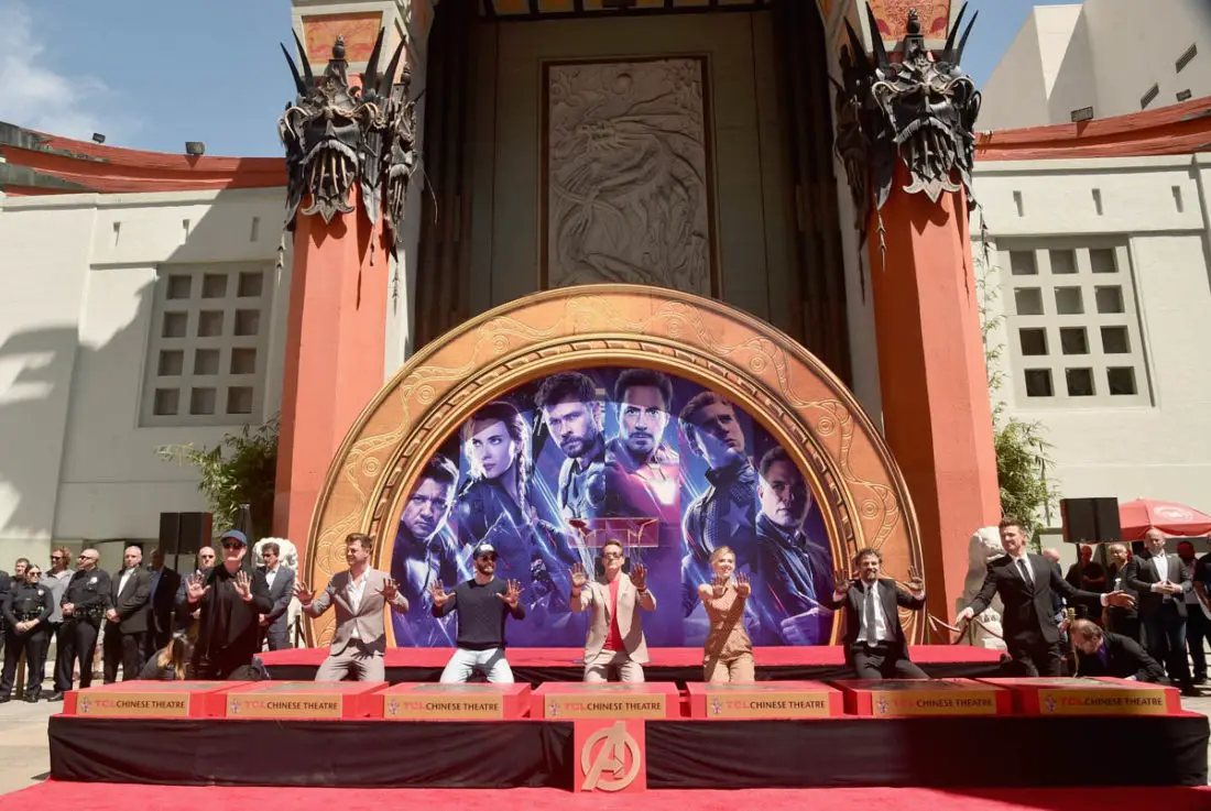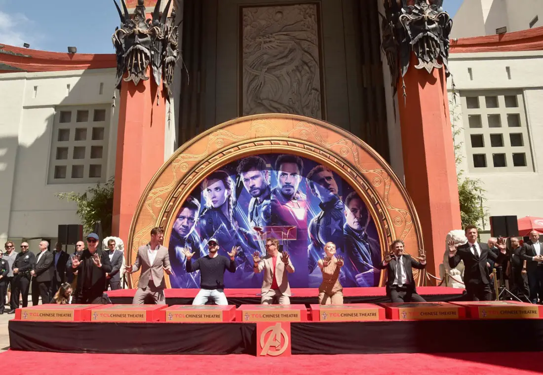 Today the stars of AVENGERS: ENDGAME placed their handprints in cement in front of the iconic TCL Chinese Theatre in Hollywood. Robert Downey Jr., Chris Evans, Mark Ruffalo, Chris Hemsworth, Scarlett Johansson, Jeremy Renner, and producer Kevin Feige were all on hand for the ceremony.