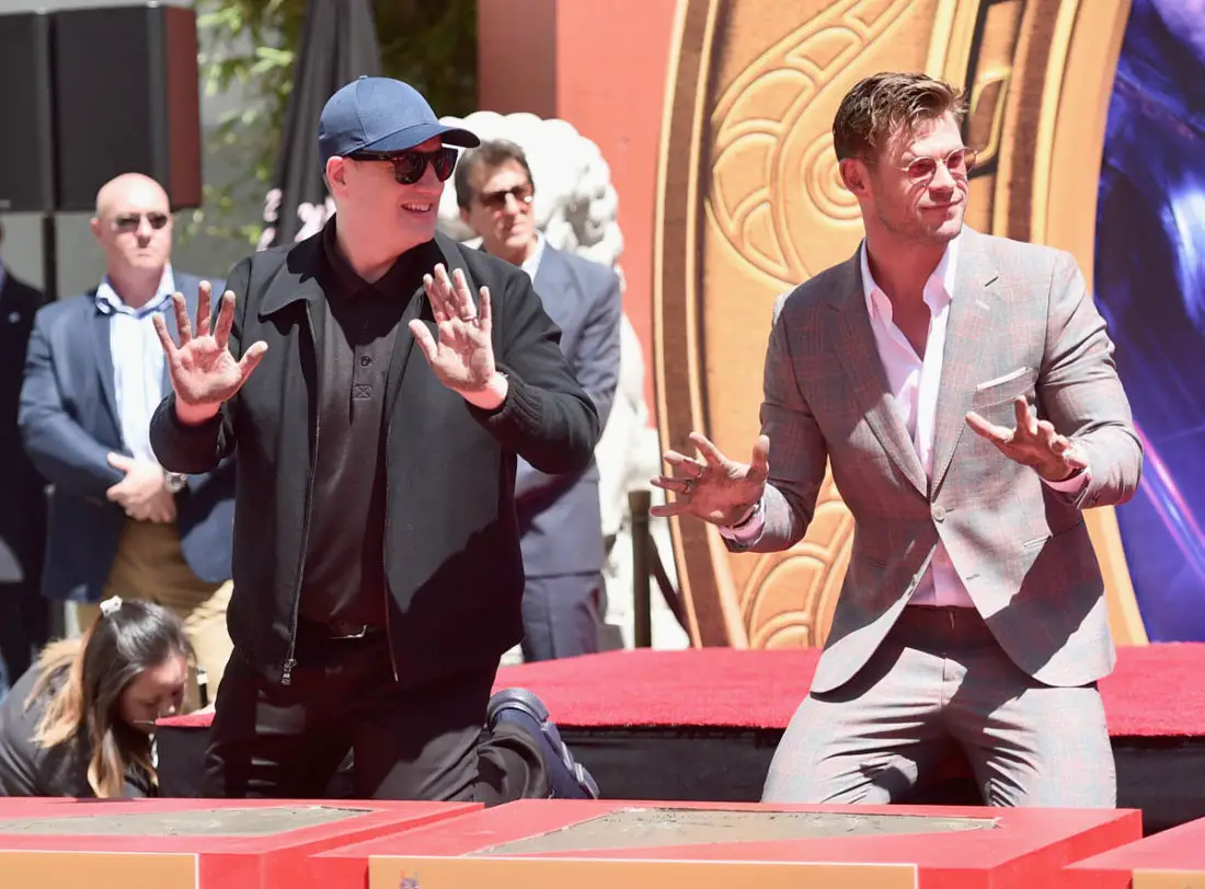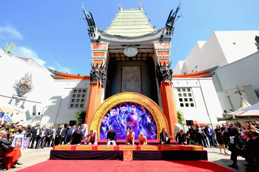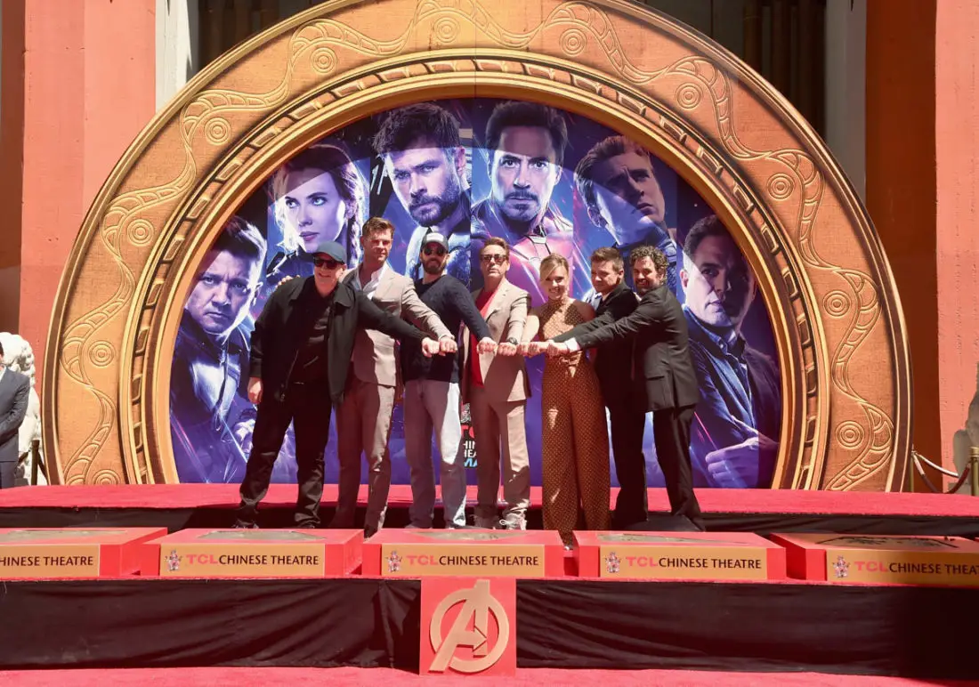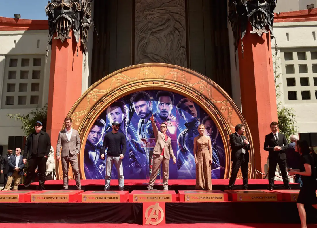 Today the stars of AVENGERS: ENDGAME placed their handprints in cement in front of the iconic TCL Chinese Theatre in Hollywood. Robert Downey Jr., Chris Evans, Mark Ruffalo, Chris Hemsworth, Scarlett Johansson, Jeremy Renner, and producer Kevin Feige were all on hand for the ceremony.