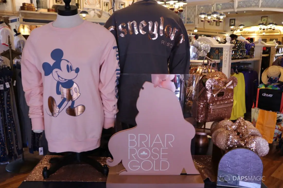 Disney has had quite the success with merchandise coordinated to fun colors. From rose gold, to millennial pink, and potion purple, there’s no shortage of great merchandise to choose from. The newest fad to hit the resort is Briar Rose gold merchandise! Of course, there is a spirit jersey for the fans who love the jerseys AND rose gold! There are also a couple of other shirts and sweatshirts that feature this new color, and a new pair of ears.