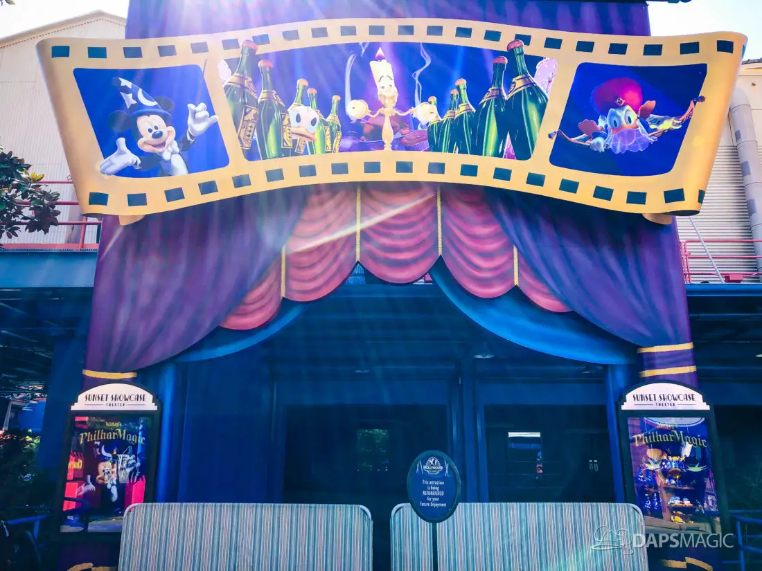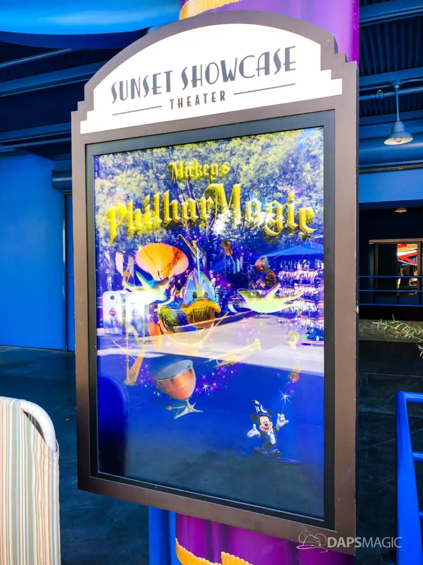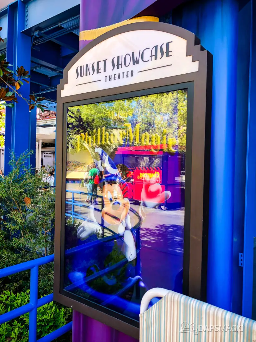 Yesterday signage went up for Mickey’s PhilharMagic. The attraction is expected to open before the end of the month at Disney California Adventure. The 3D show is approximately 12 minutes long and will soon be bringing Mickey’s magic and Donald Duck’s antics to the Sunset Showcase Theatre.