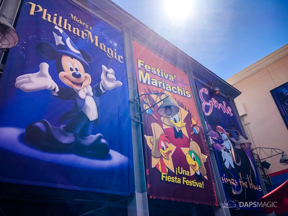More signs have arrived overnight at the Sunset Showcase Theatre ahead of the opening of Mickey’s PhilharMagic Orchestra. With the arrival of the new banners and signs, it appears that the attraction could open any day. It was originally announced that the attraction would be opening sometime in April. It is possible that this could mean it opens this weekend. However, no date has been set by Disney at this point.