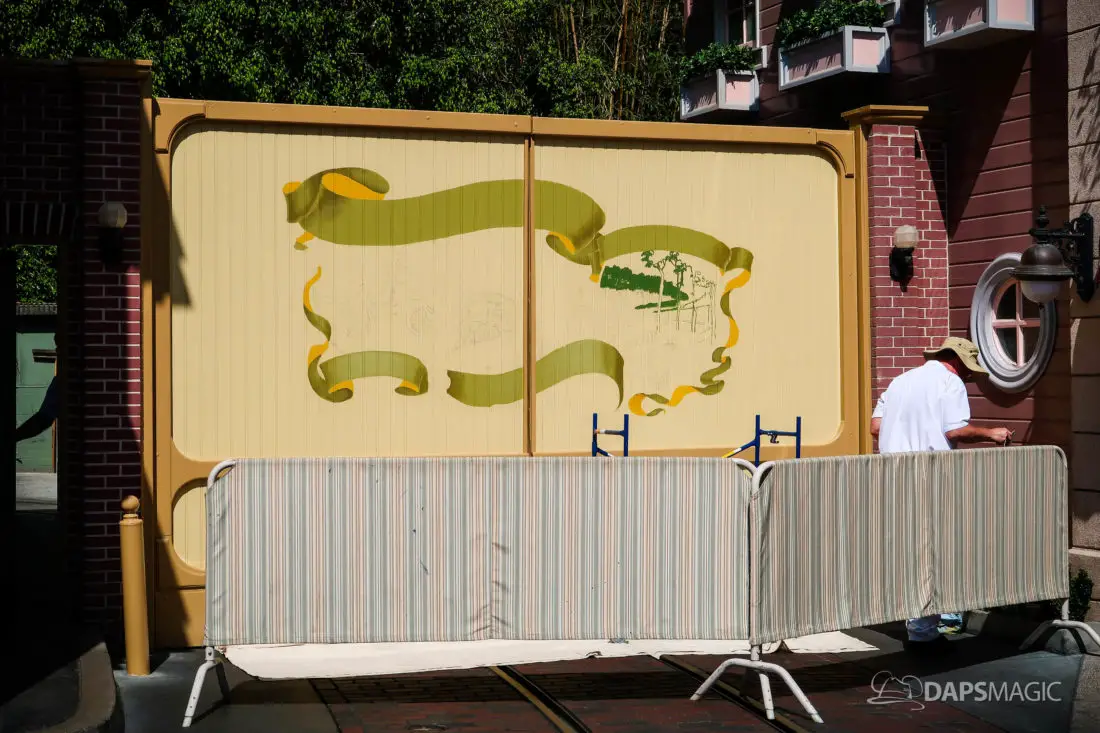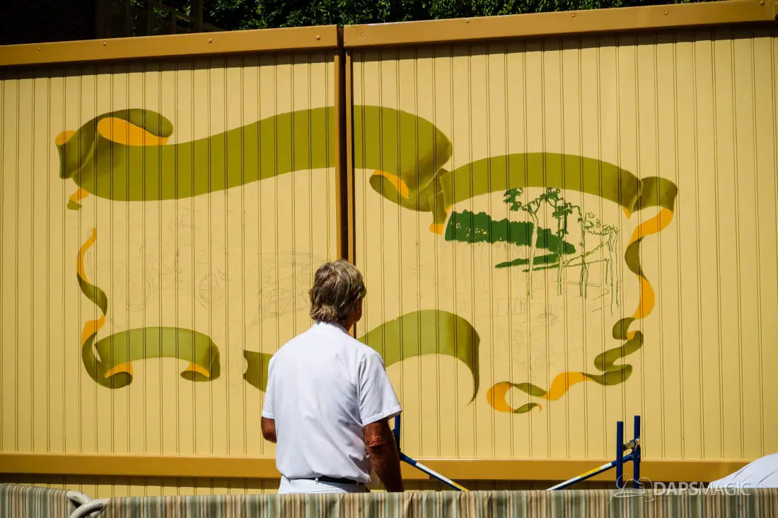 According to the cast members, it should take a couple of weeks to complete this mural on the doors. They shared that it is based off an old piece of original artwork. They didn’t say where the artwork was originally from, however. Throughout the morning they made considerable progress and DAPS MAGIC will follow the progress over the coming days and weeks until it is finished.