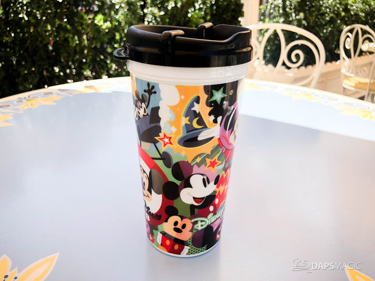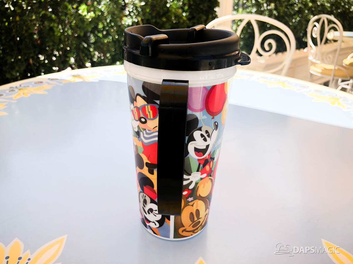 The mug showcases Mickey Mouse through the years. It can be purchased for $7.49 and comes with a drink of choice. There is also an annual passport discount for this. It can be found at quick service locations at Disneyland.