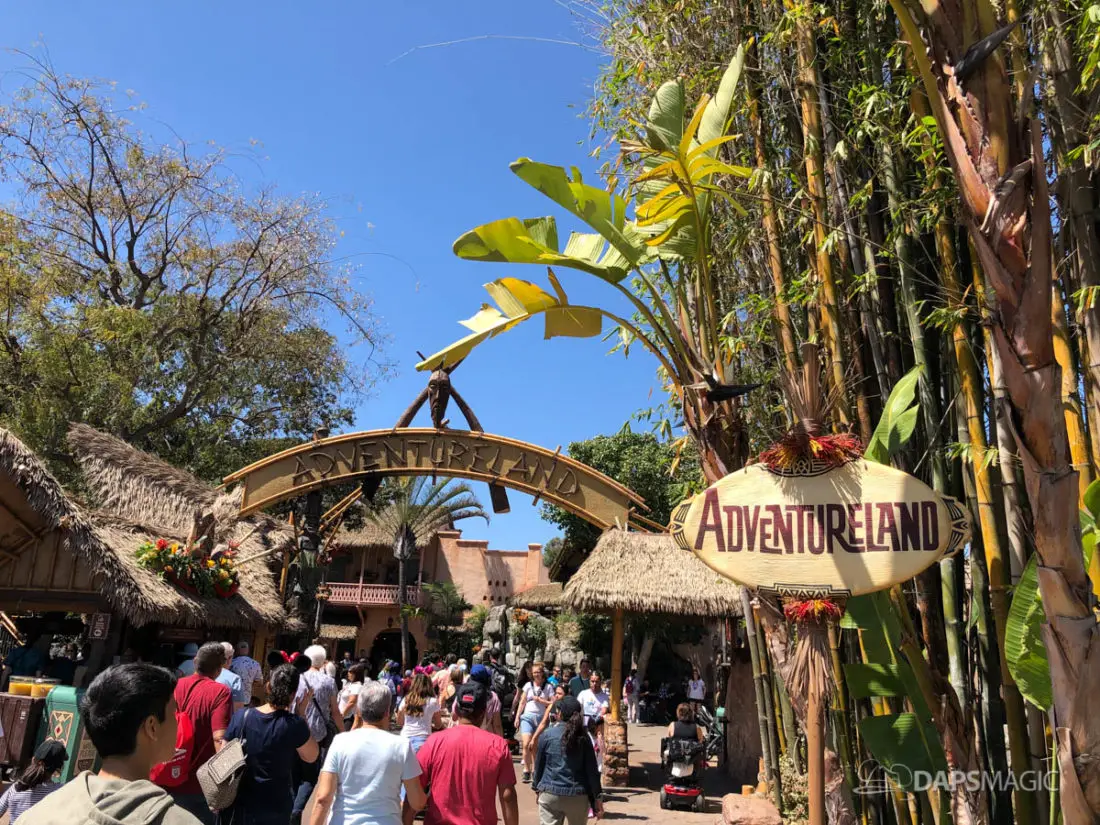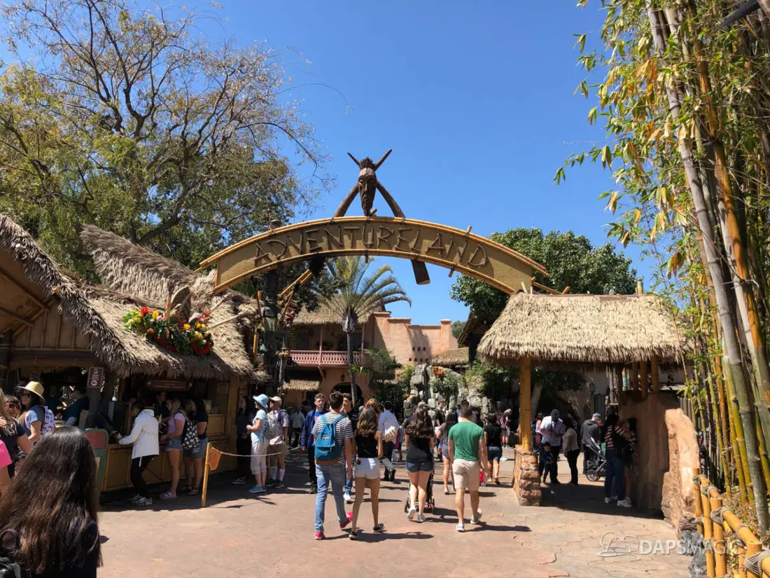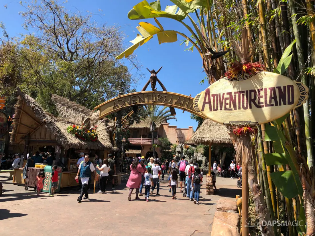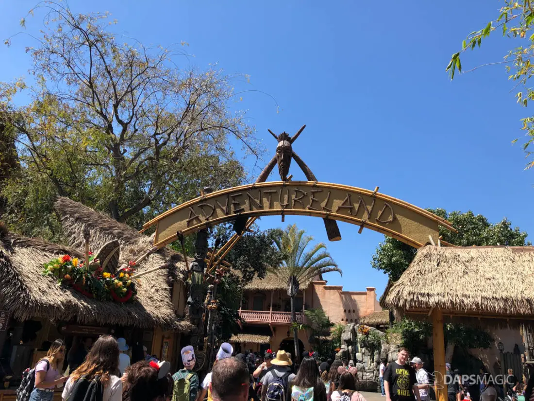 The newest change to be noticed comes courtesy of a friend of DAPS MAGIC, Roger (@rgrrabbit1 on Instagram). Today a new sign has appeared in front of the entrance to Adventureland. While new the location, the sign originally could be seen by guests disembarking from The Jungle Cruise on the Tahitian Terrace. The entrance is expected to undergo more changes soon. A permit was filed to remove the current Adventureland sign. A new entrance that will hopefully utilize the original sign will soon replace it.