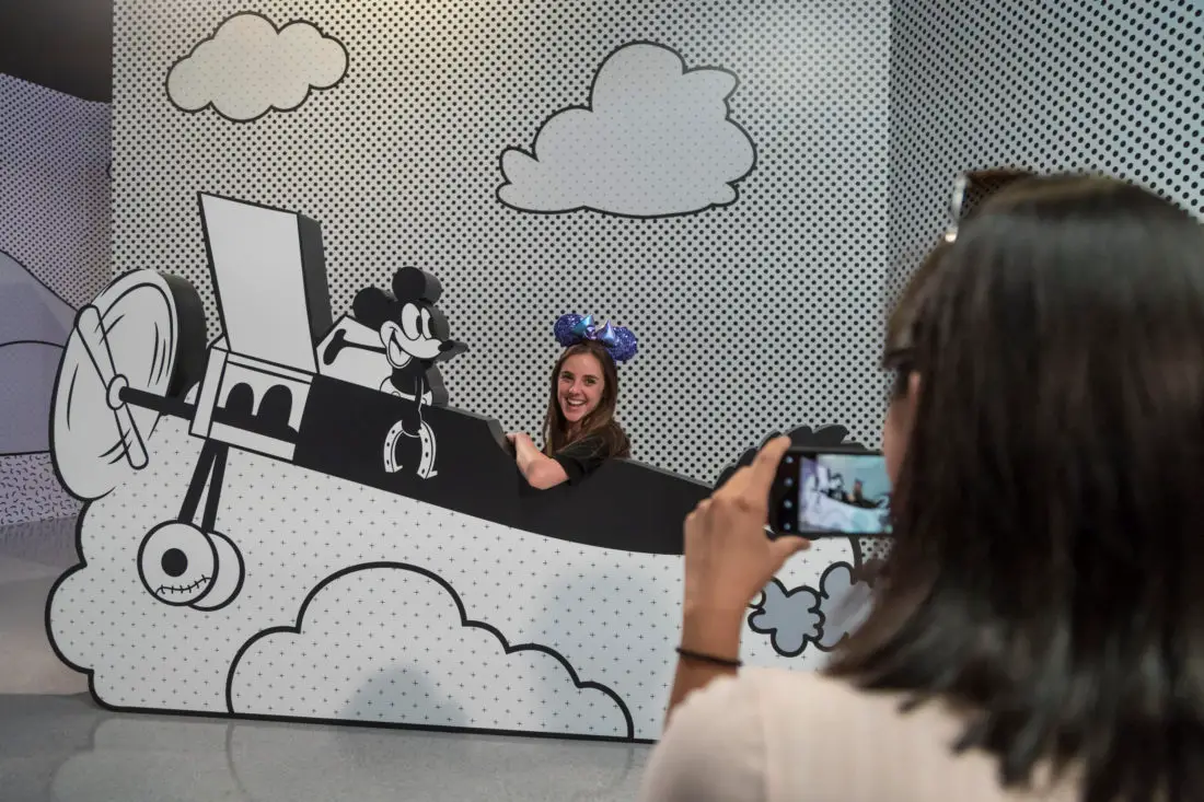 Pop-Up Disney! A Mickey Celebration in the Downtown Disney District at the Disneyland Resort is a must-see experience celebrating 90 years of the beloved Mickey Mouse. This limited-time pop-up offering features selfie-and-photo-worthy, immersive and imaginatively-themed rooms inspired by all things Mickey Mouse. In a salute to the classics, guests are the pop of color in the black and white cartoon world of ÒPlane CrazyÓ (pictured), where Mickey Mouse and Minnie Mouse both made their first appearance in 1928. Pop-Up Disney! A Mickey Celebration requires a separate ticket. (Joshua Sudock/Disneyland Resort)