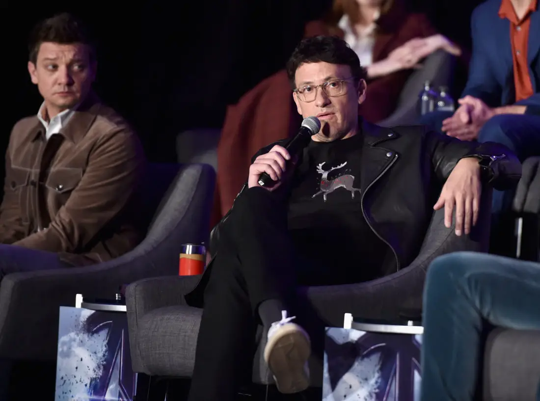 LOS ANGELES, CA – APRIL 07: Jeremy Renner (L) and Director Anthony Russo speak onstage during Marvel Studios’ “Avengers: Endgame” Global Junket Press Conference at the InterContinental Los Angeles Downtown on April 7, 2019 in Los Angeles, California. (Photo by Alberto E. Rodriguez/Getty Images for Disney) *** Local Caption *** Jeremy Renner; Anthony Russo