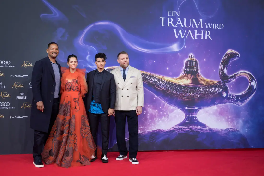 (L-R) Guy Richie, Will Smith, Naomi Scott and Mena Massoud attend the “Aladdin” gala screening on May 11, 2019 in Berlin, Germany. .© Disney/Folioscope/Silke Reents