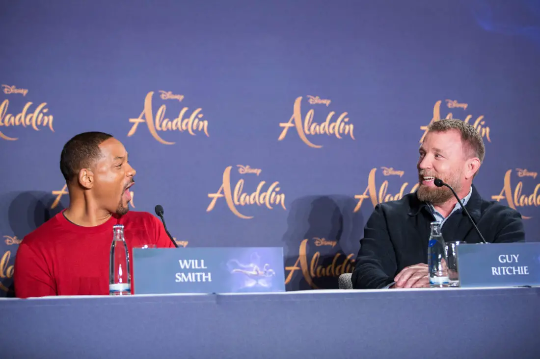 (L-R) Will Smith and Guy Ritchie attend the “Aladdin” press conference on May 11, 2019 in Berlin, Germany. .© Disney/Folioscope/Hanna Boussouar