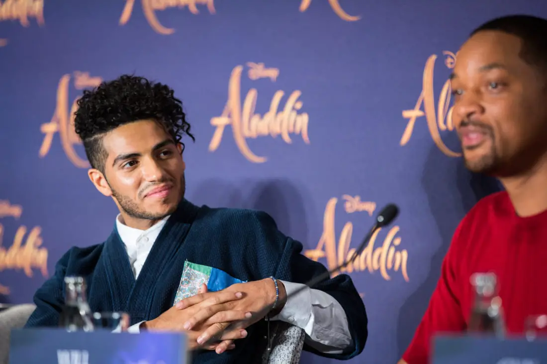 (L-R) Mena Massoud and Will Smith attend the “Aladdin” press conference on May 11, 2019 in Berlin, Germany. .© Disney/Folioscope/Hanna Boussouar