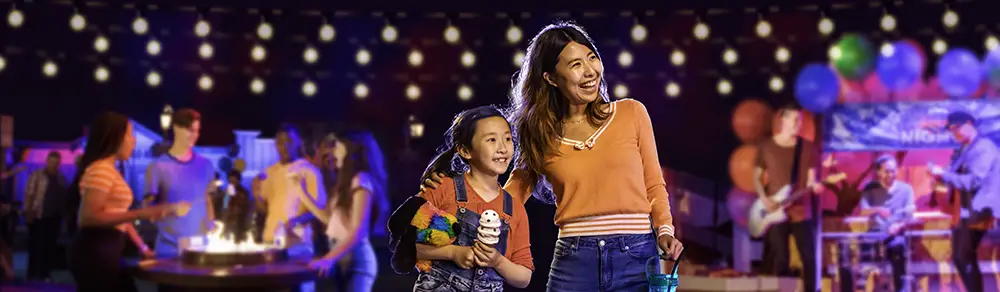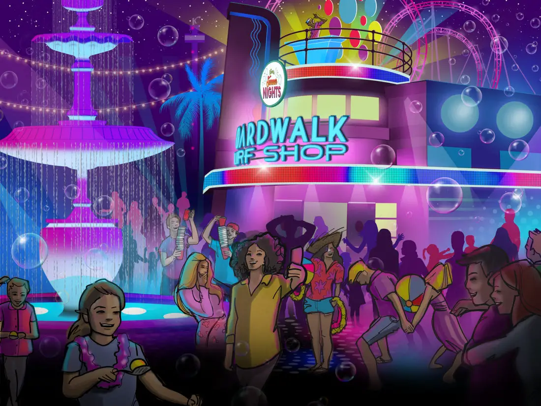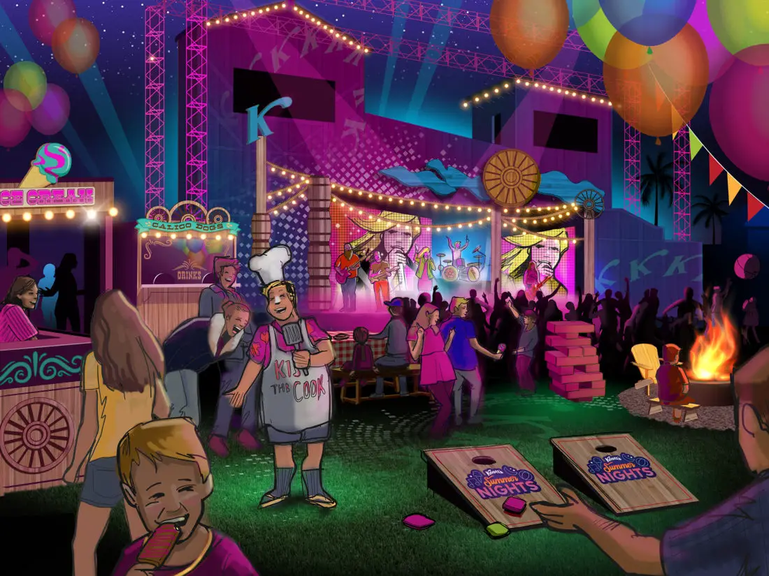 Knott’s will bring a festival to the nightscape of the park. Special food offerings and entertainment will be available. There will be a top 40’s live band at the Calico Mine Stage. Calico Park Stage will have rotating bands throughout the summer. A DJ will be at the Boardwalk near the fountain. Several Instagram-able photo opportunities will be spread out. There will be special games and interactive experiences to participate in. It also looks like the park will glow with several lights and special highlights over the buildings and games. Overall it looks like a great family party, reminiscent of a backyard summer bbq!
