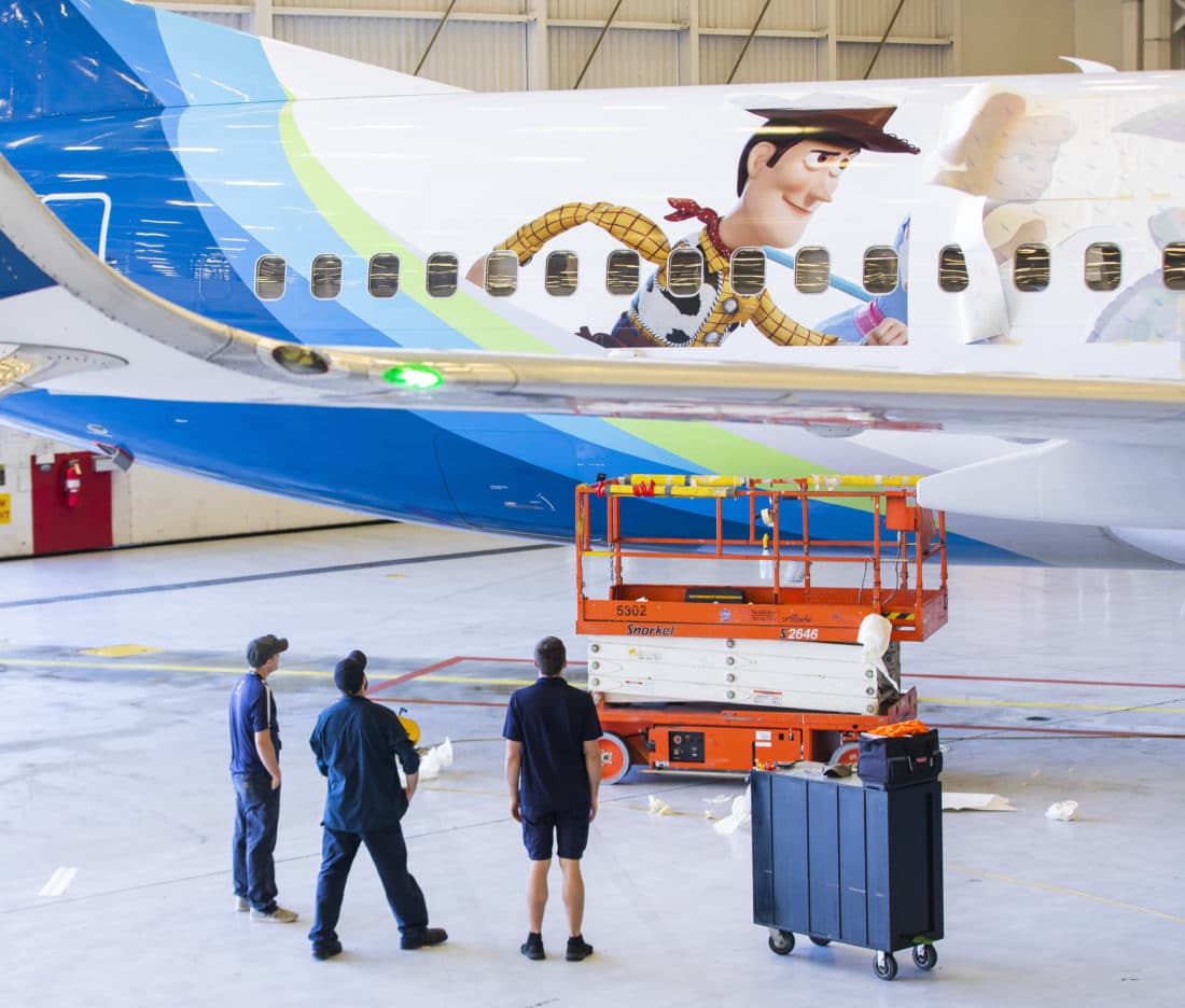 “Guests of all ages will be eager to toy with an adventure after hearing the buzz around our new ‘Toy Story 4’ livery,” said Natalie Bowman, Alaska Airlines’ managing director of brand marketing and advertising. “Many of us have grown up following the iconic characters, and we’re happy to take the toys to new heights, sharing the playful, heartwarming imagery with travelers across our coast-to-coast network––and beyond.”