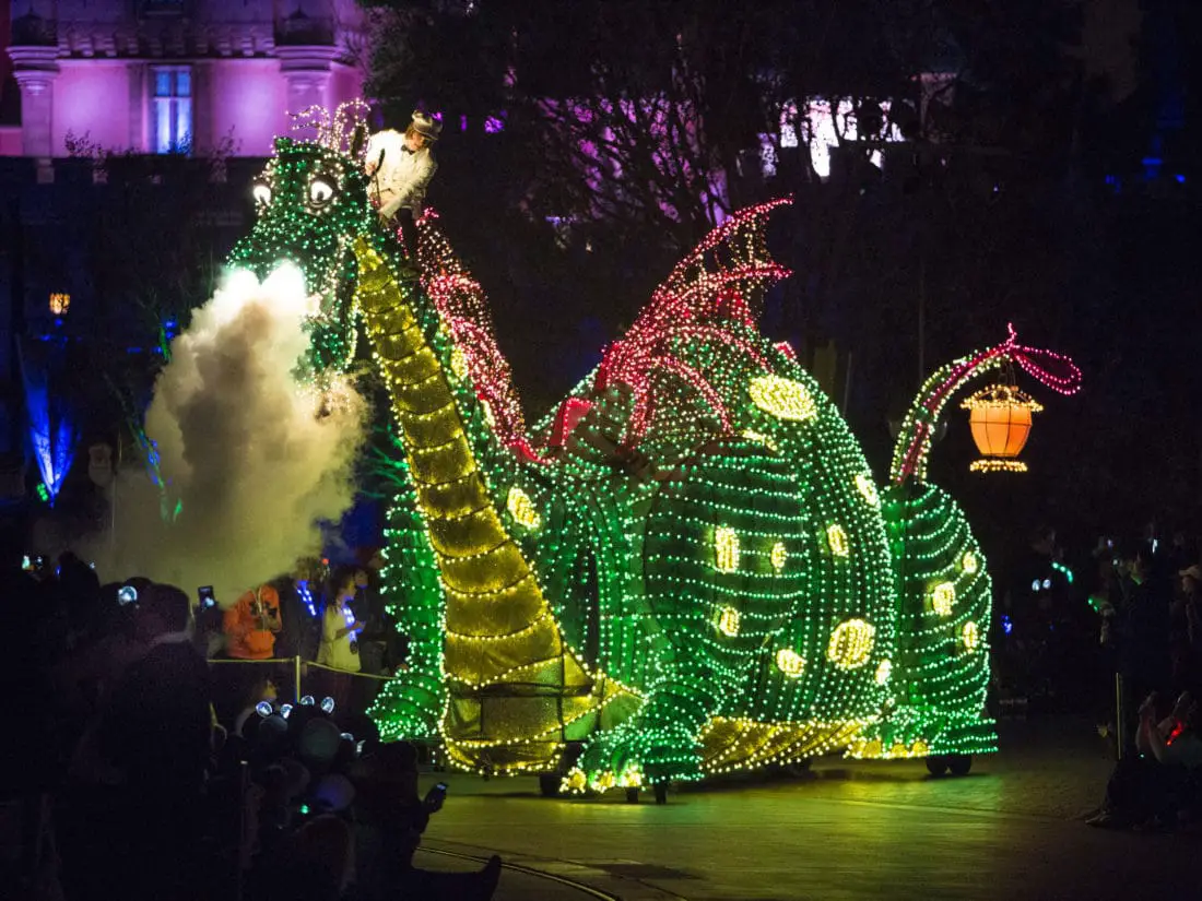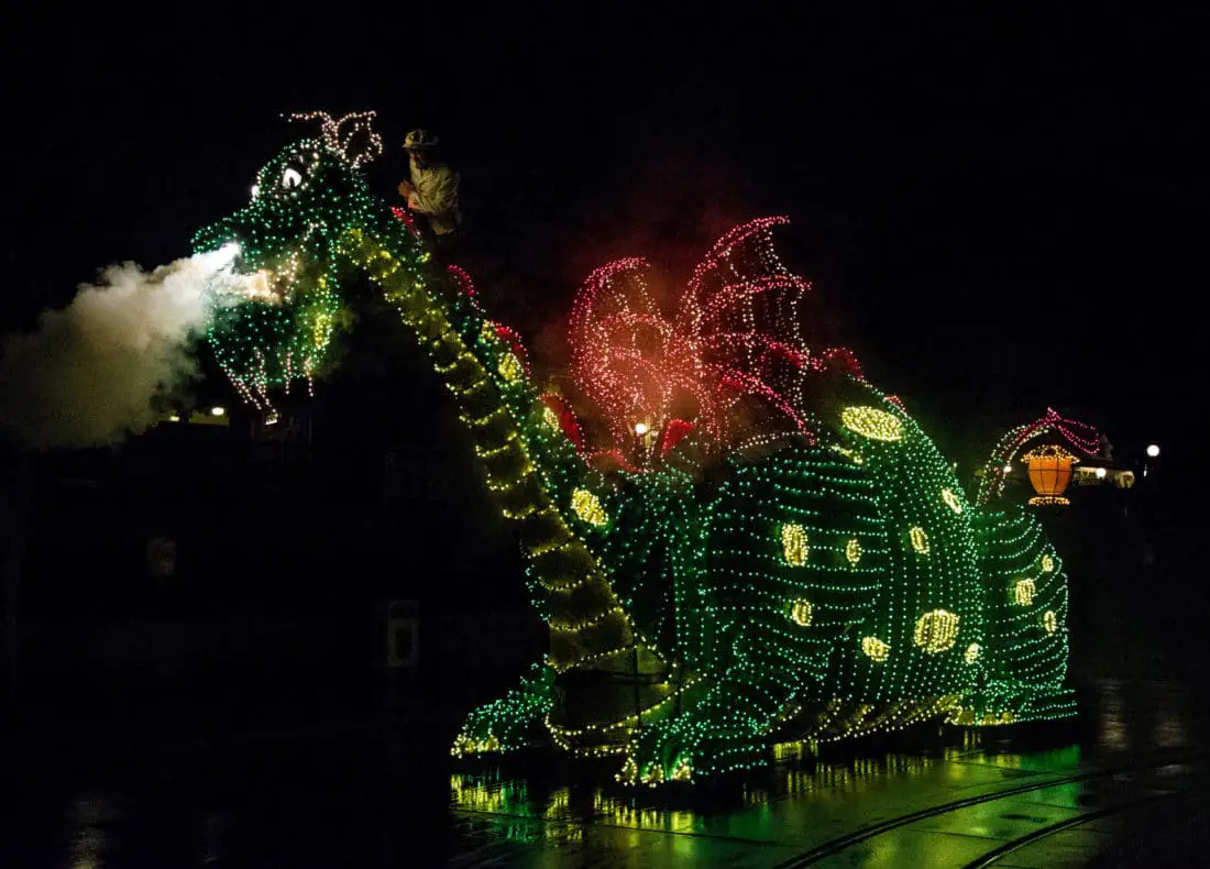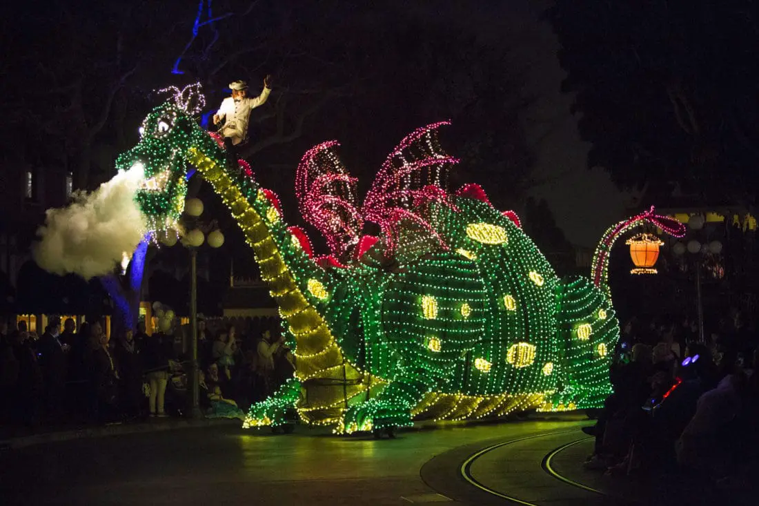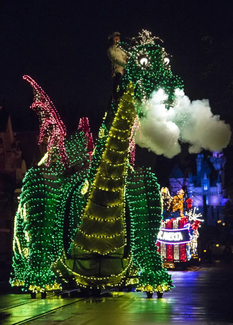 Pete’s Dragon dazzles in the night during the Main Street Electrical Parade at Disneyland Park. The nostalgic fan-favorite Main Street Electrical Parade will once again create magical summer memories for guests of all ages at Disneyland Park, with a limited-time encore engagement taking place nightly, from Aug. 2 – Sept. 30, 2019. The nighttime spectacle features half-million sparkling lights and “electro-syntho-magnetic musical sounds.” Disneyland Resort is located in Anaheim, Calif. (Scott Brinegar/Disneyland)