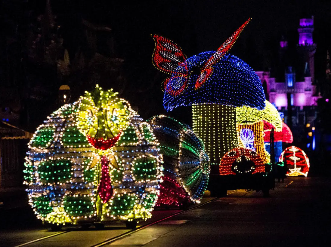 600,000 lights sparkle in the parade’s nighttime journey from Small World Mall in Fantasyland to Town Square on Main Street, U.S.A. (approximate number).