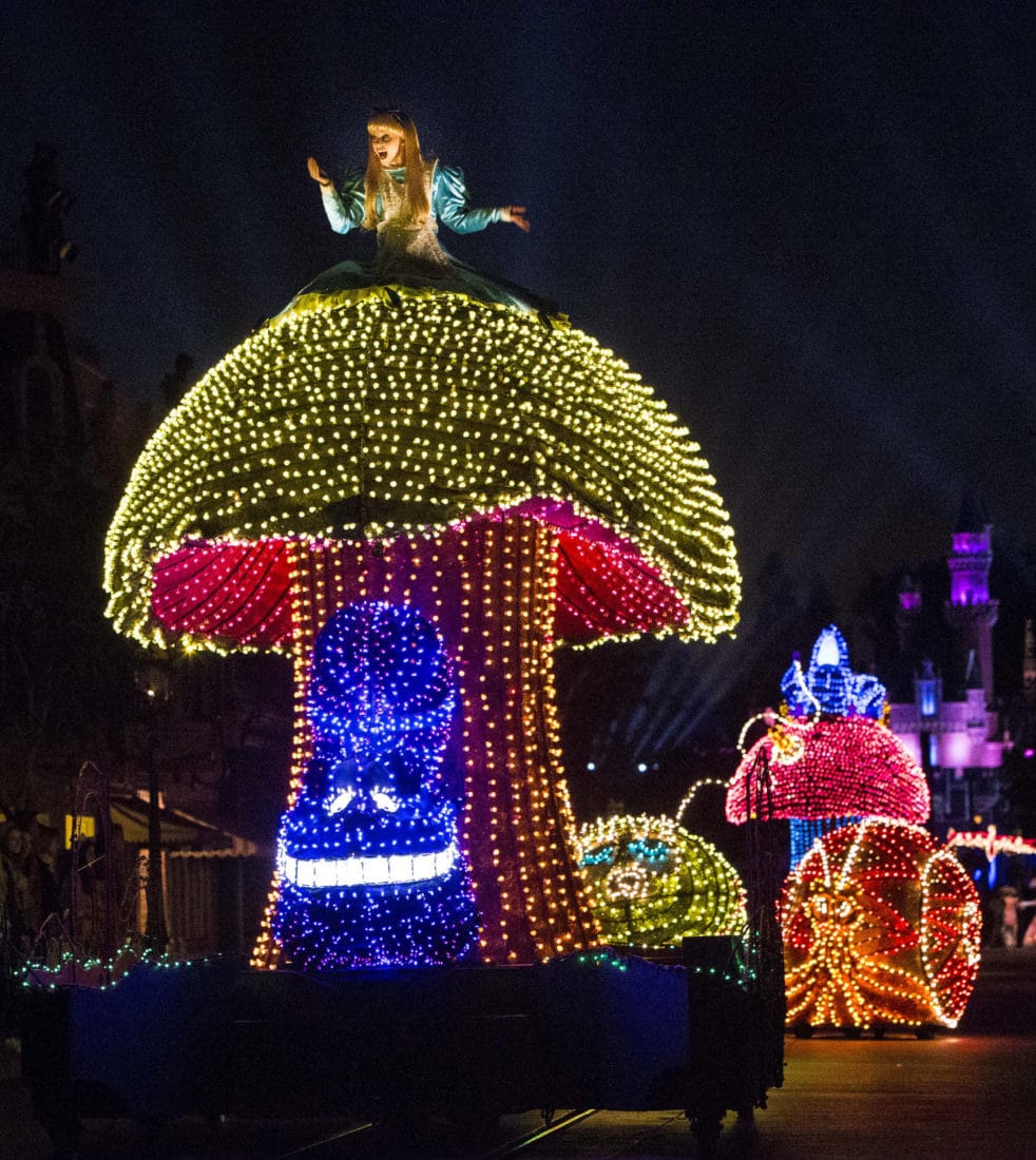 Alice dazzles in the night during the Main Street Electrical Parade at Disneyland Park. The nostalgic fan-favorite Main Street Electrical Parade will once again create magical summer memories for guests of all ages at Disneyland Park, with a limited-time encore engagement taking place nightly, from Aug. 2 – Sept. 30, 2019. The nighttime spectacle features half-million sparkling lights and “electro-syntho-magnetic musical sounds.” Disneyland Resort is located in Anaheim, Calif. (Scott Brinegar/Disneyland)