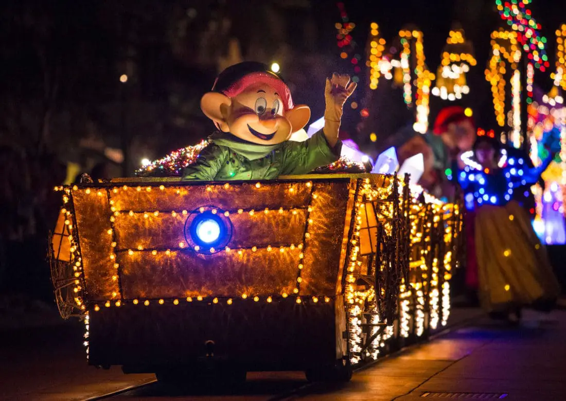 22 floats illuminate the parade route at Disneyland, nearly doubling the number of floats from the parade’s debut (12) in 1972.