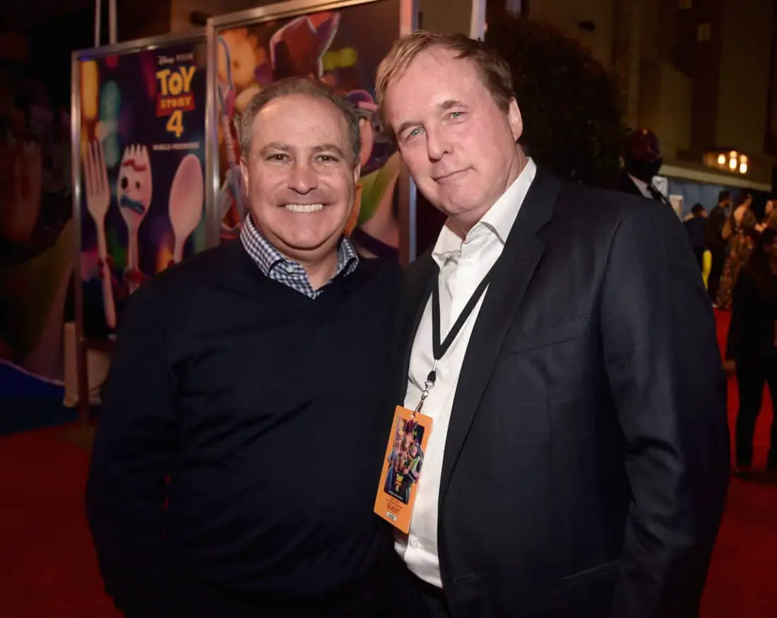 HOLLYWOOD, CA – JUNE 11: President of Disney Animation, Andrew Millstein (L) and Michael Giacchino attend the world premiere of Disney and Pixar’s TOY STORY 4 at the El Capitan Theatre in Hollywood, CA on Tuesday, June 11, 2019. (Photo by Alberto E. Rodriguez/Getty Images for Disney) *** Local Caption *** Andrew Millstein; Michael Giacchino