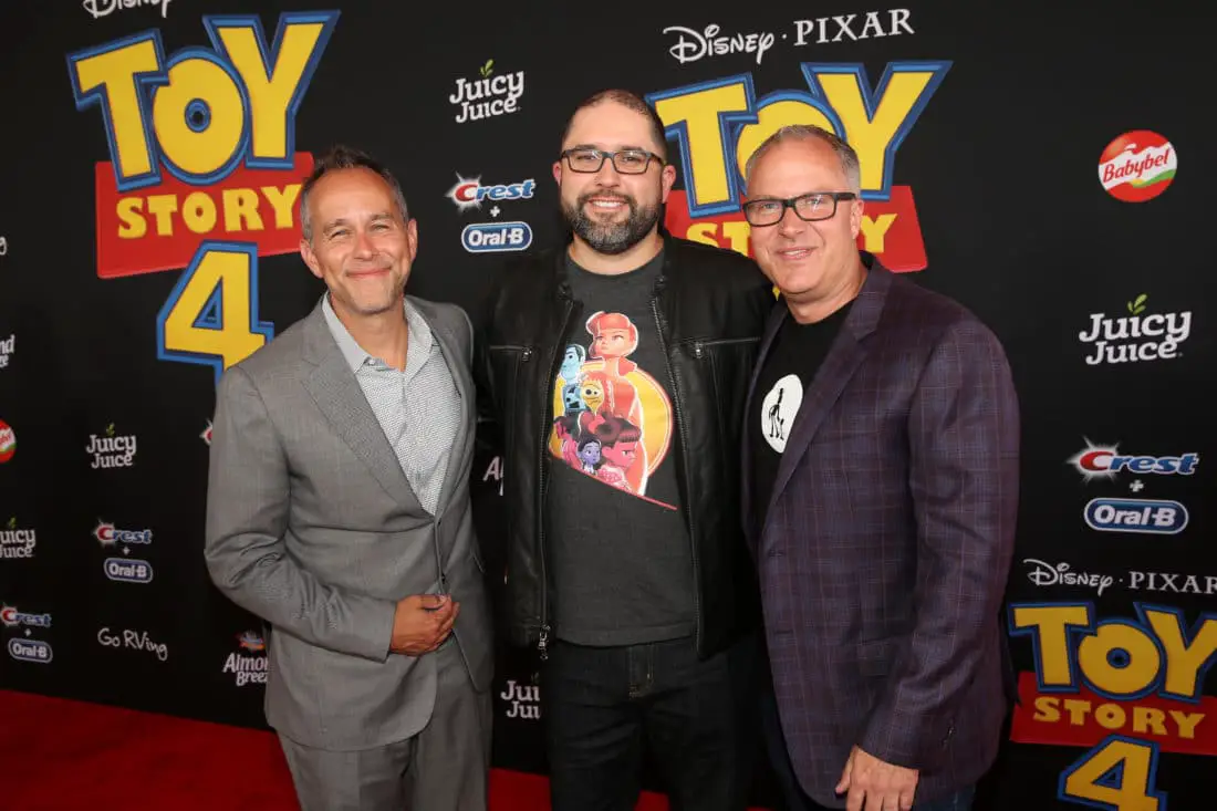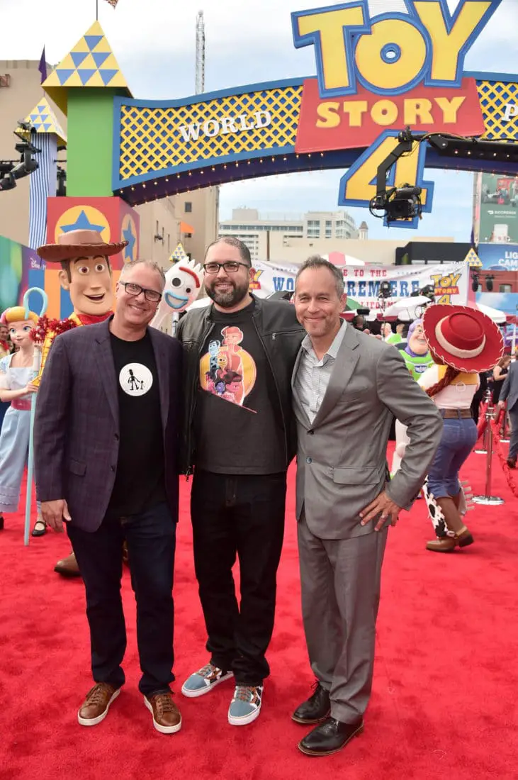 HOLLYWOOD, CA – JUNE 11: (L-R) Producer Mark Nielsen, director Josh Cooley, and producer Jonas Rivera attend the world premiere of Disney and Pixar’s TOY STORY 4 at the El Capitan Theatre in Hollywood, CA on Tuesday, June 11, 2019. (Photo by Alberto E. Rodriguez/Getty Images for Disney) *** Local Caption *** Mark Nielsen; Josh Cooley; Jonas Rivera