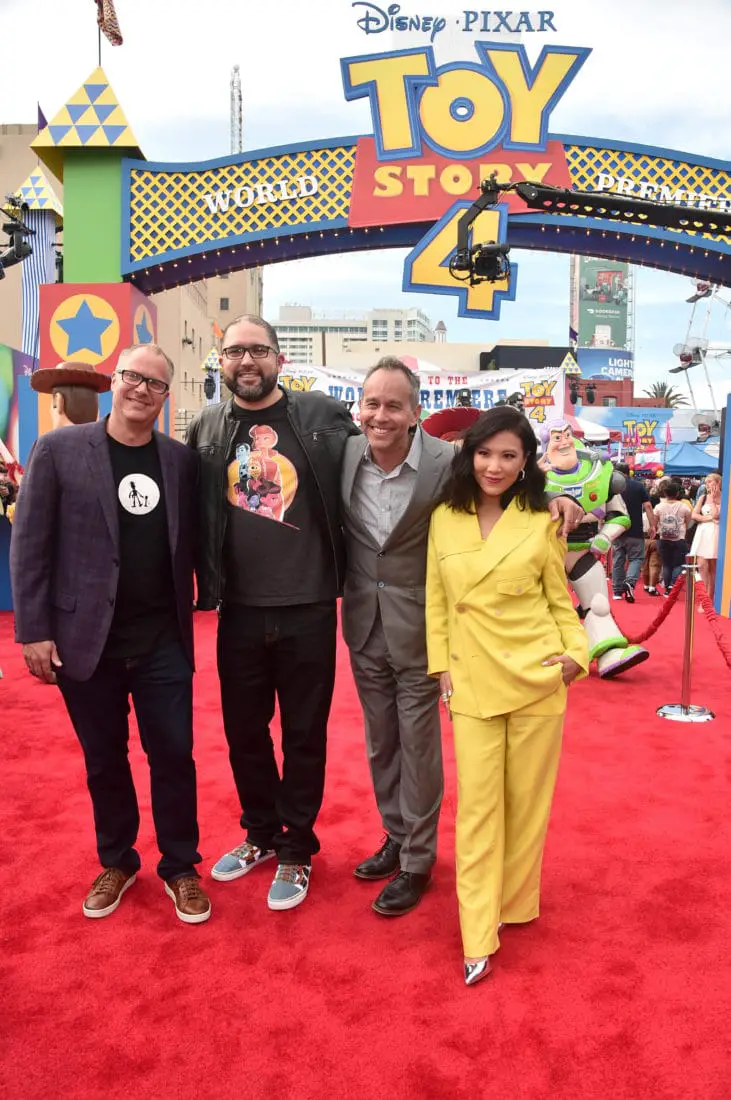 HOLLYWOOD, CA – JUNE 11: (L-R) Producer Mark Nielsen, director Josh Cooley, producer Jonas Rivera and actor Ally Maki attend the world premiere of Disney and Pixar’s TOY STORY 4 at the El Capitan Theatre in Hollywood, CA on Tuesday, June 11, 2019. (Photo by Alberto E. Rodriguez/Getty Images for Disney) *** Local Caption *** Mark Nielsen; Josh Cooley; Jonas Rivera; Ally Maki