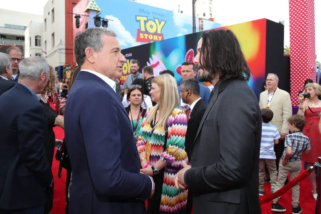 HOLLYWOOD, CA – JUNE 11: The Walt Disney Company Chairman and CEO Bob Iger (L) and Keanu Reeves attend the world premiere of Disney and Pixar’s TOY STORY 4 at the El Capitan Theatre in Hollywood, CA on Tuesday, June 11, 2019. (Photo by Rich Polk/Getty Images for Disney) *** Local Caption *** Bob Iger; Keanu Reeves
