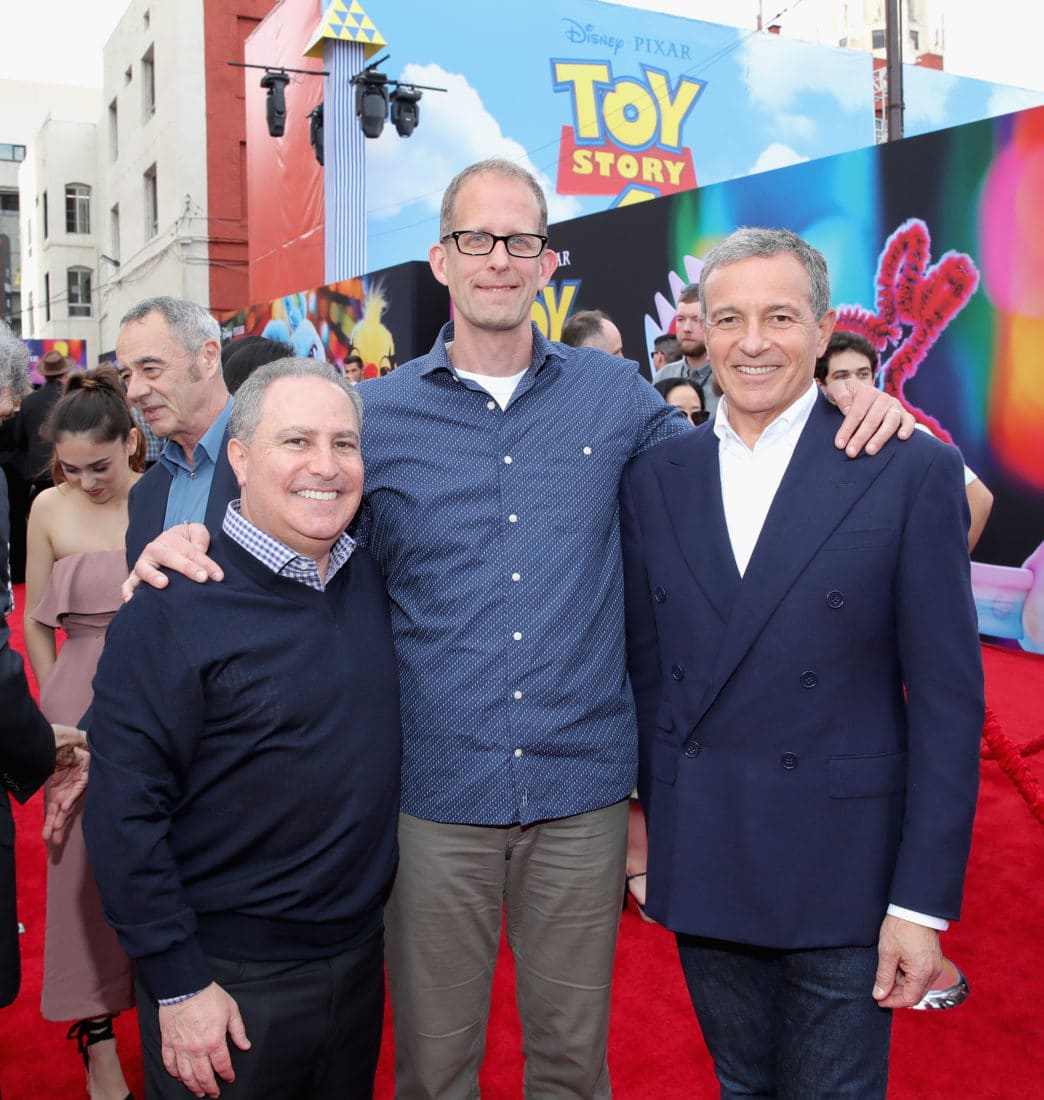 HOLLYWOOD, CA – JUNE 11: (L-R) Walt Disney Studios President, Alan Bergman, Chief Creative Officer of Pixar Animation Studios Pete Docter and The Walt Disney Company Chairman and CEO Bob Iger attend the world premiere of Disney and Pixar’s TOY STORY 4 at the El Capitan Theatre in Hollywood, CA on Tuesday, June 11, 2019. (Photo by Rich Polk/Getty Images for Disney) *** Local Caption *** Alan Bergman; Pete Docter; Bob Iger