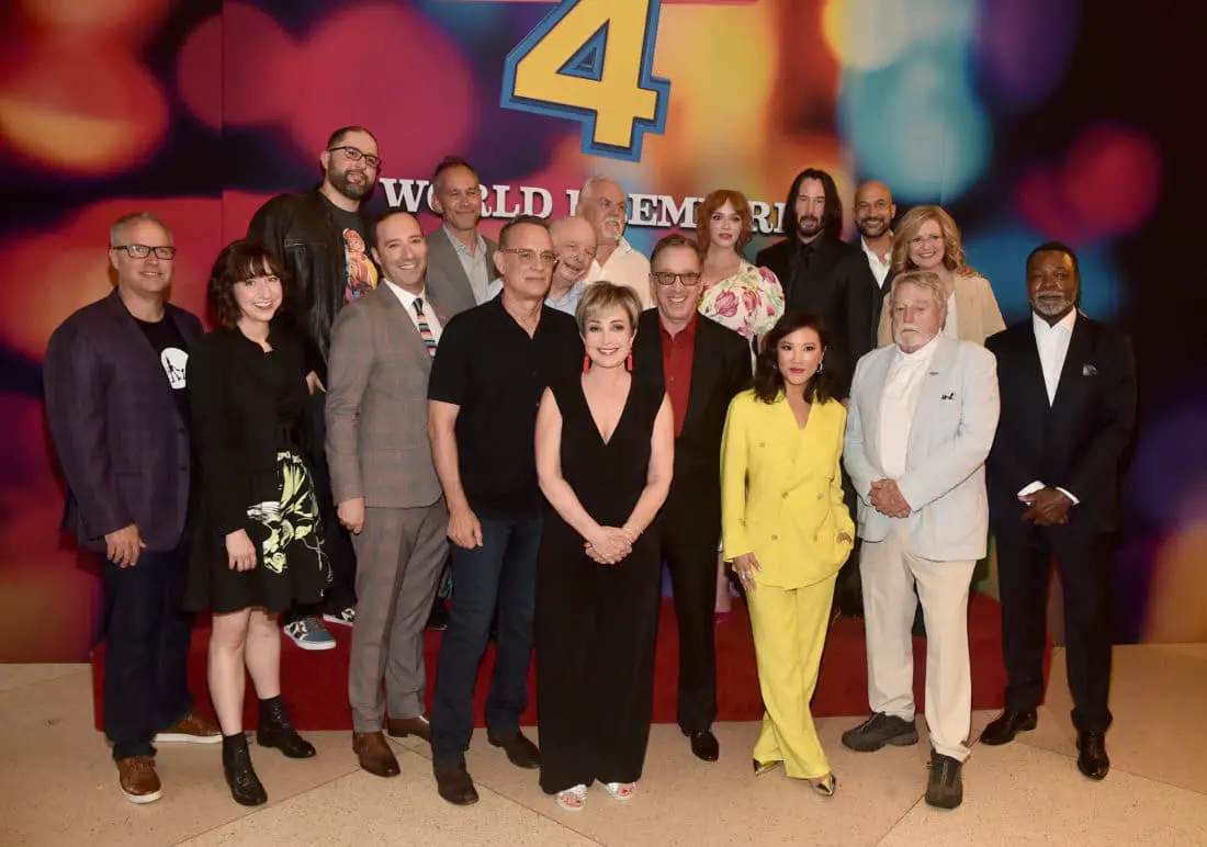 HOLLYWOOD, CA – JUNE 11: Producer Mark Nielsen, Kristen Schaal, Director Josh Cooley, Tony Hale, Producer Jonas Rivera, Tom Hanks, Annie Potts, Wallace Shawn, John Ratzenberger, Tim Allen, Christina Hendricks, Keanu Reeves, Ally Maki, Keegan-Michael Key, Bonnie Hunt, Blake Clark and Carl Weathers attend the world premiere of Disney and Pixar’s TOY STORY 4 at the El Capitan Theatre in Hollywood, CA on Tuesday, June 11, 2019. (Photo by Jesse Grant/Getty Images for Disney) *** Local Caption *** Mark Nielsen; Kristen Schaal; Josh Cooley; Tony Hale; Jonas Rivera; Tom Hanks; Annie Potts; Wallace Shawn; John Ratzenberger; Tim Allen; Christina Hendricks; Keanu Reeves; Ally Maki; Keegan-Michael Key; Bonnie Hunt; Blake Clark; Carl Weathers