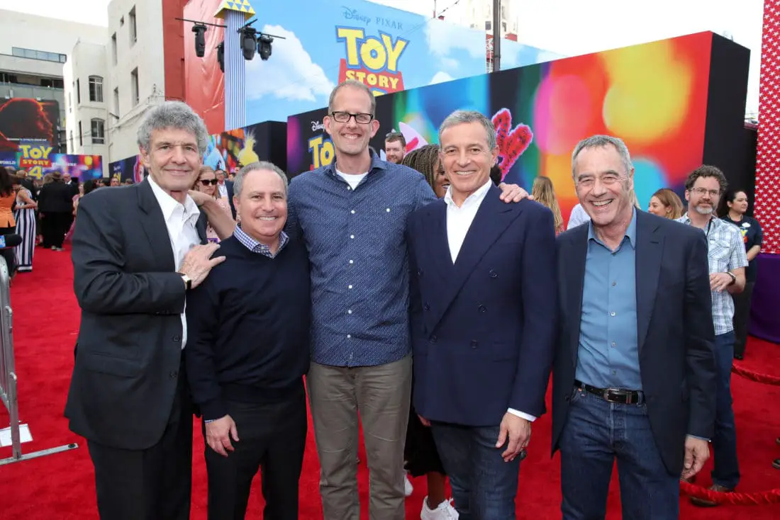 HOLLYWOOD, CA – JUNE 11: (L-R) Chairman, The Walt Disney Studios, Alan Horn, Walt Disney Studios President, Alan Bergman, Chief Creative Officer of Pixar Animation Studios Pete Docter, The Walt Disney Company Chairman and CEO Bob Iger and President of Pixar Animation Studios Jim Morris attend the world premiere of Disney and Pixar’s TOY STORY 4 at the El Capitan Theatre in Hollywood, CA on Tuesday, June 11, 2019. (Photo by Rich Polk/Getty Images for Disney) *** Local Caption *** Alan Horn; Alan Bergman; Pete Docter; Bob Iger; Jim Morris