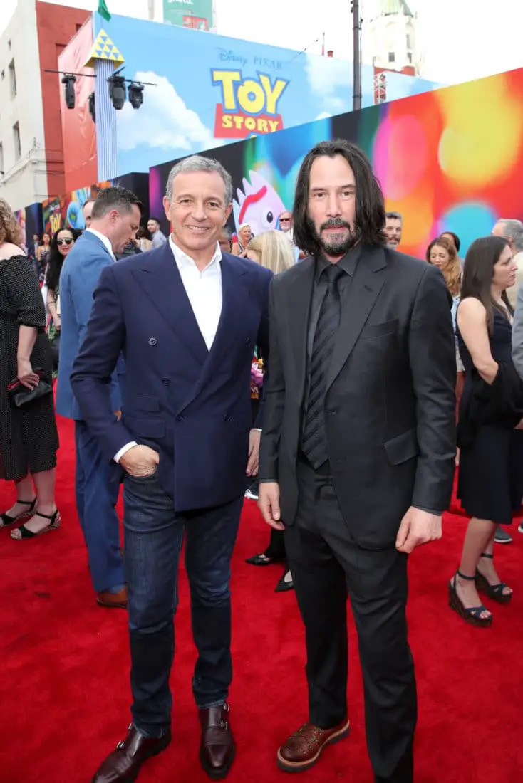 HOLLYWOOD, CA – JUNE 11: (L-R) The Walt Disney Company Chairman and CEO Bob Iger and Keanu Reeves attend the world premiere of Disney and Pixar’s TOY STORY 4 at the El Capitan Theatre in Hollywood, CA on Tuesday, June 11, 2019. (Photo by Rich Polk/Getty Images for Disney) *** Local Caption *** Keanu Reeves; Bob Iger