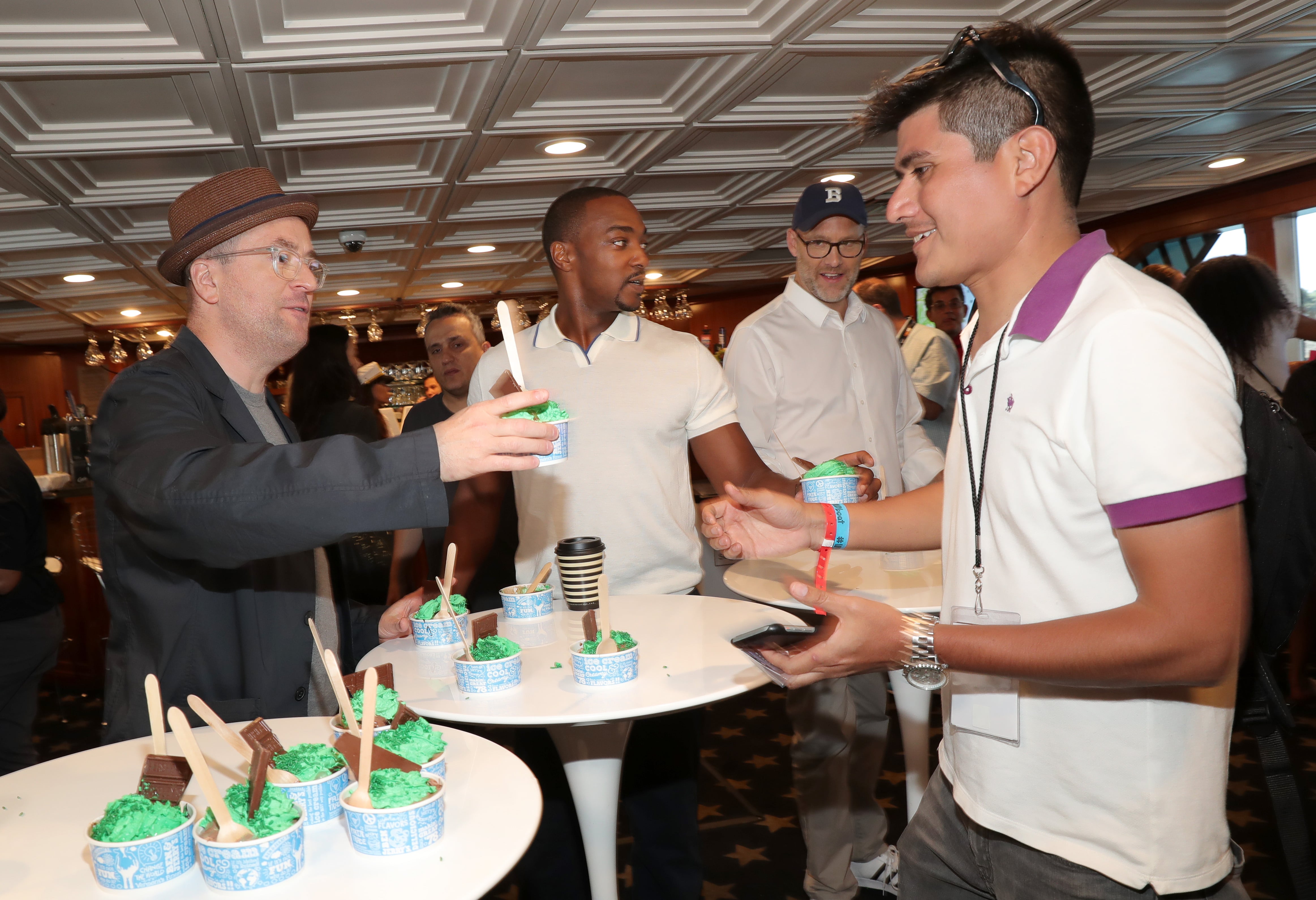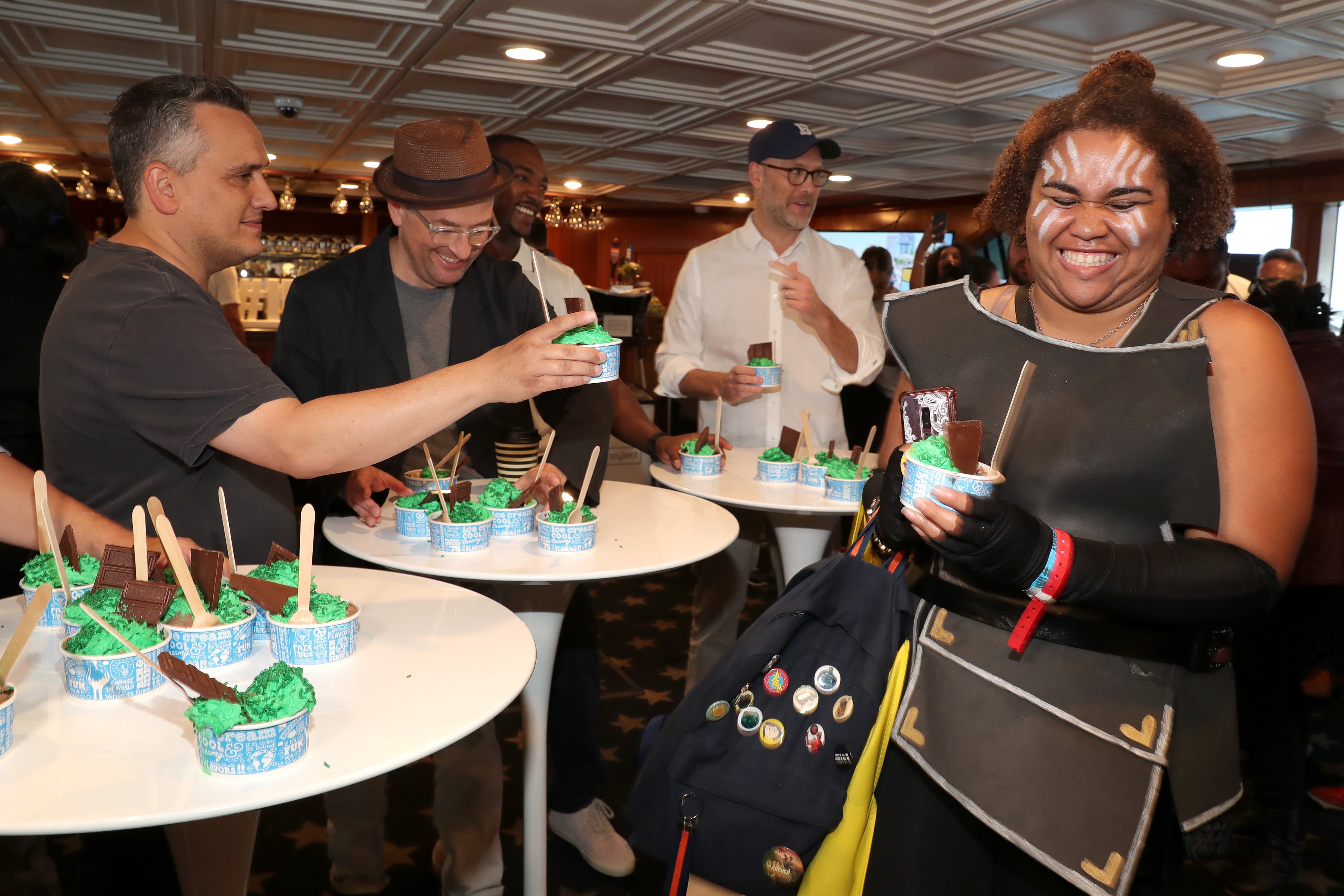SAN DIEGO, CA (July 20, 2019) – In celebration of the in-home release of Marvel Studios AVENGERS: ENDGAME (releasing Digitally on 7/30 and Blu-ray™ on 8/13), directors Anthony and Joe Russo, along with special MCU guest Anthony Mackie and writers Christopher Markus & Stephen McFeely, kicked off the “We Love You 3000” tour from the IMDboat at San Diego Comic-Con 2019. As part of the festivities, they personally thanked fans who have invested so deeply in the Marvel Cinematic Universe (MCU), treated them to MCU-inspired sundaes courtesy of Ben & Jerry’s and posed for photos with those who dressed up as their favorite Avengers characters!