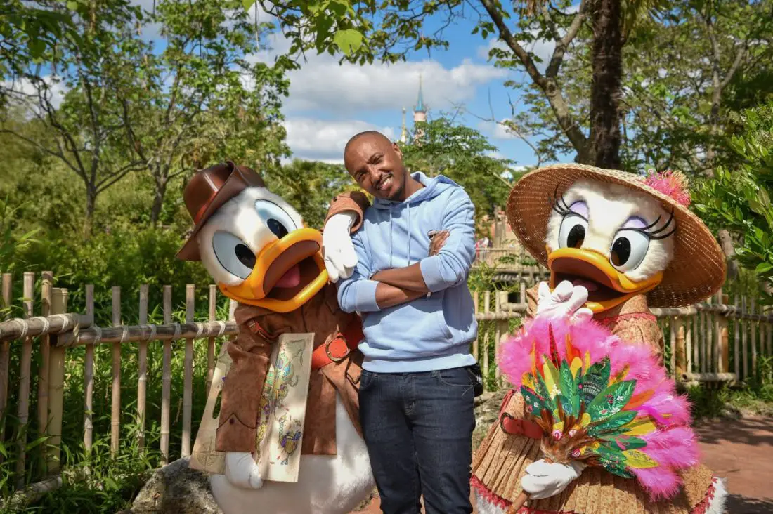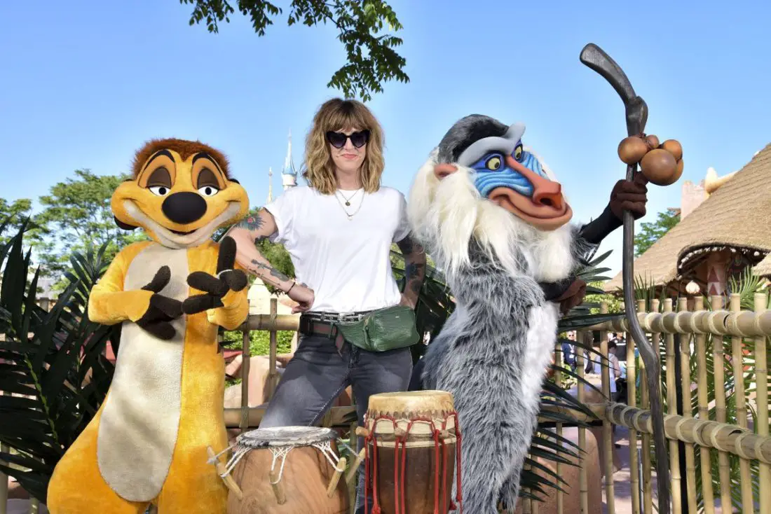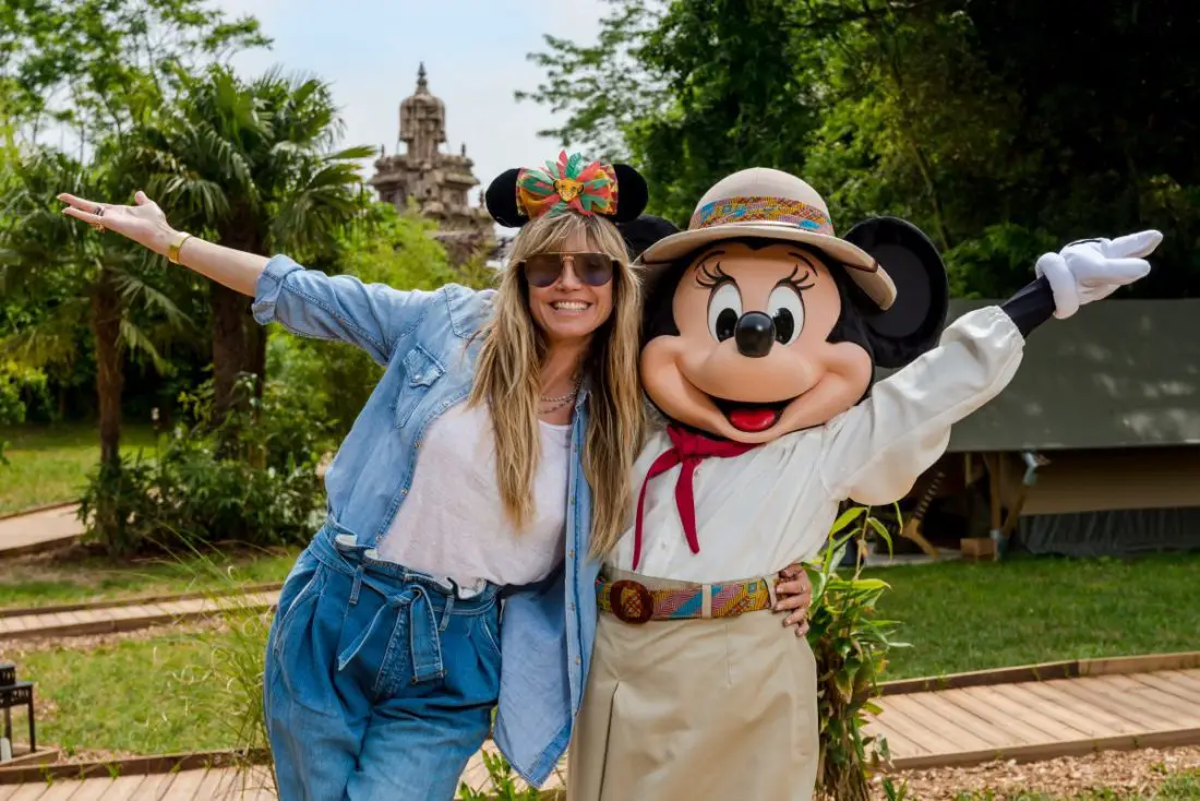 Celebrities have gone on an adventure at Disneyland Park to discover the story-like novelties in the African savannah of Simba and Nala, as well as in the Indian jungle of Baloo and King Louie. Heidi Klum met Minnie in her adventurous costume as it can be found in the new show The Rhythm of the Jungle . The top model also had fun picking up “Hakuna Matata” at the tamtam with the musicians who are performing right now at the Djembe Joy Village.
