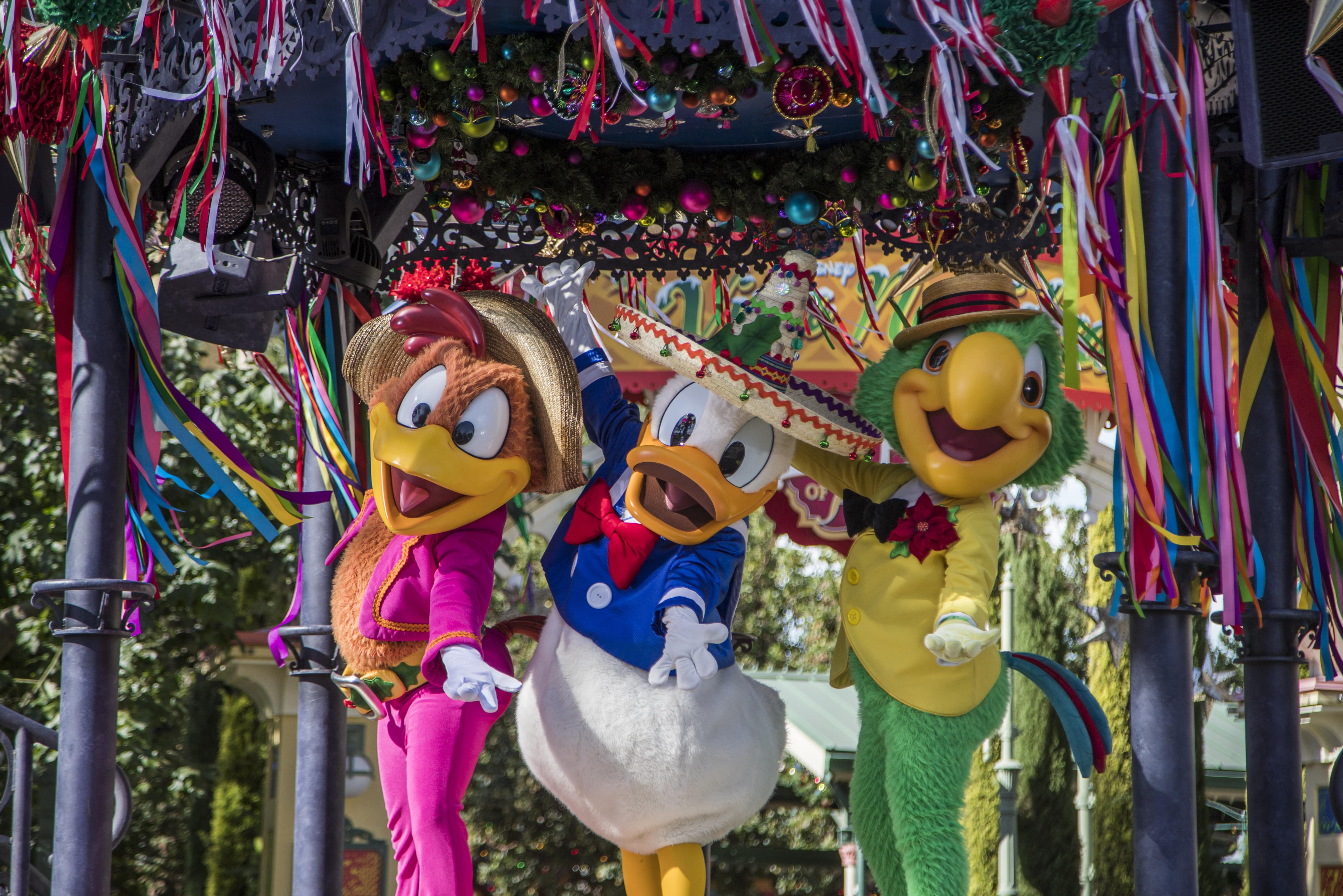 - The Three Caballeros host the popular “Disney ¡Viva Navidad! Street Party” celebration, featuring folklórico and samba dancers, live musicians, and Mickey and Minnie in their fiesta best.
