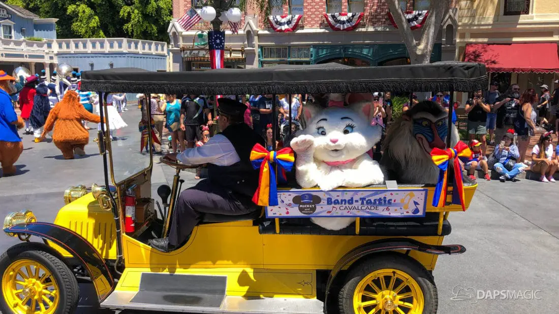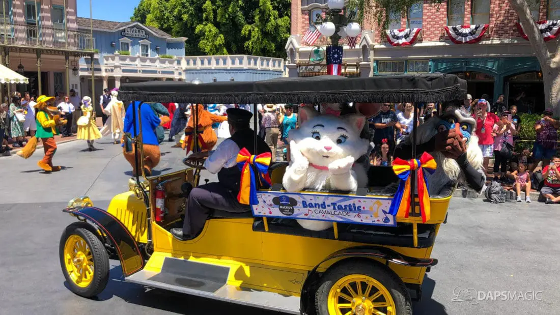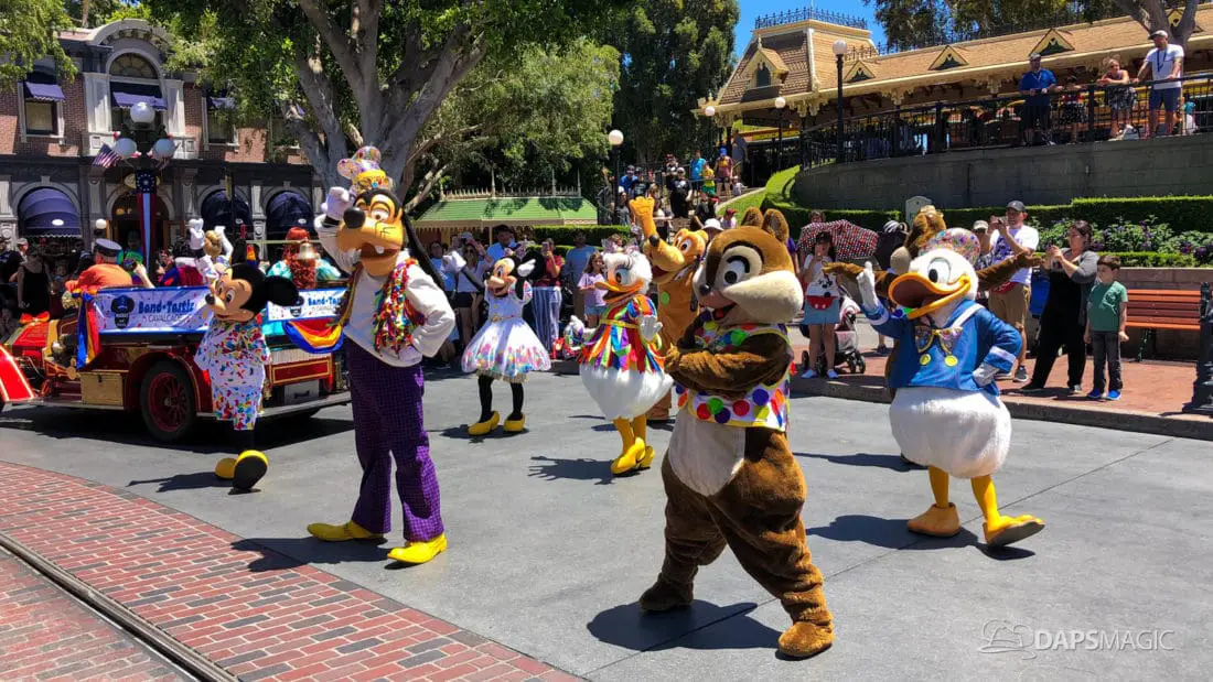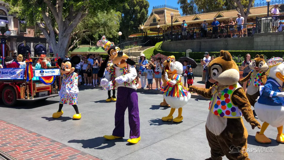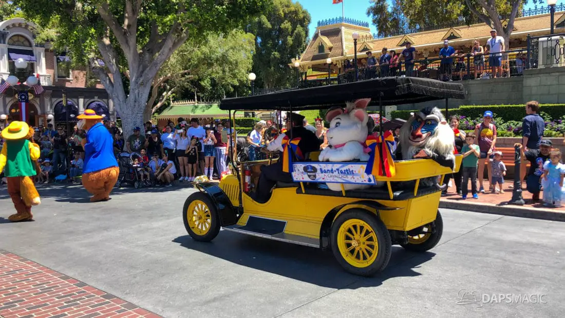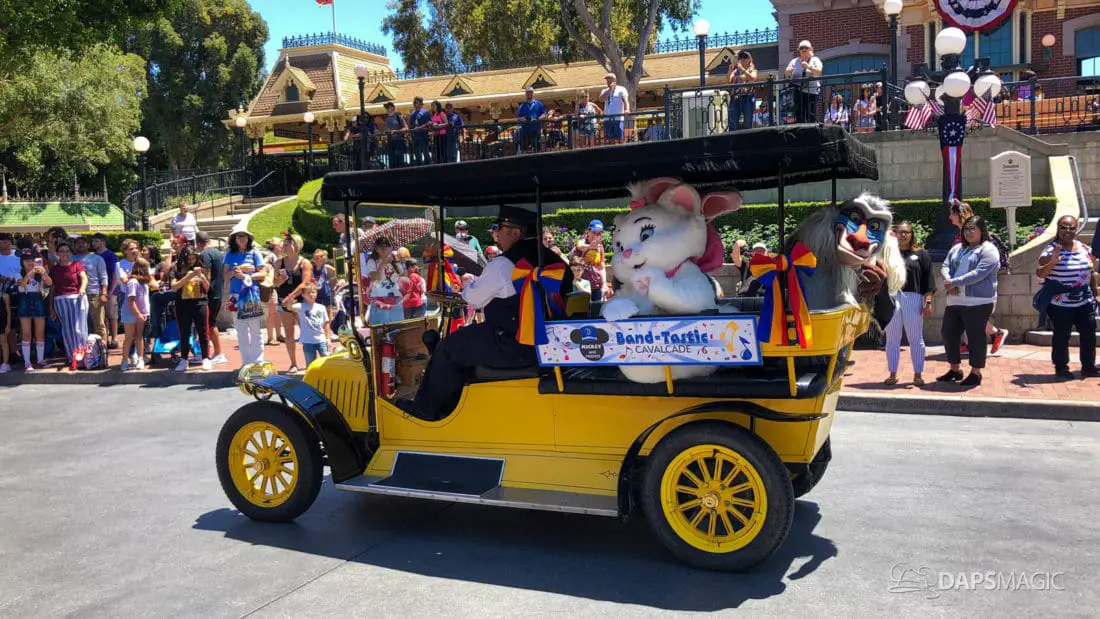 One day after the final performance of Mickey’s Soundsational Parade ended its run, Mickey and Friends Band-Tastic Cavalcade began making its way up and down the parade route through Disneyland. The cavalcade gives guests the opportunity to see Mickey and friends perform with the Disneyland Band all along the parade route.