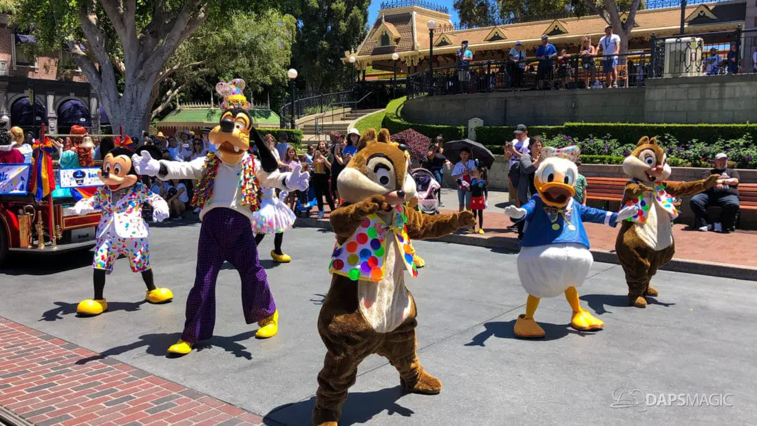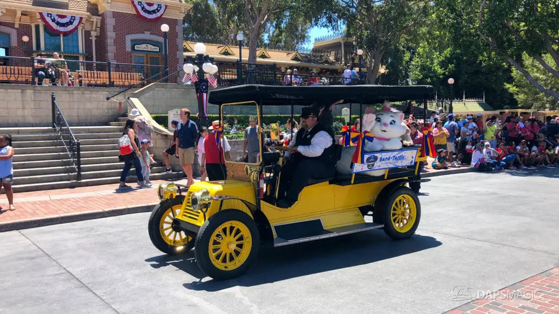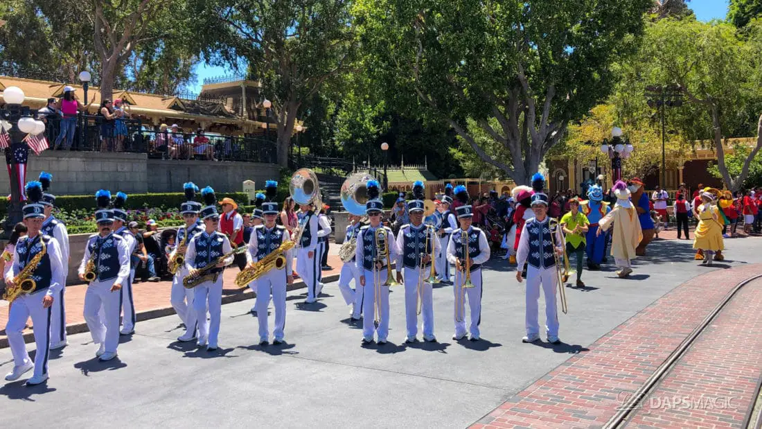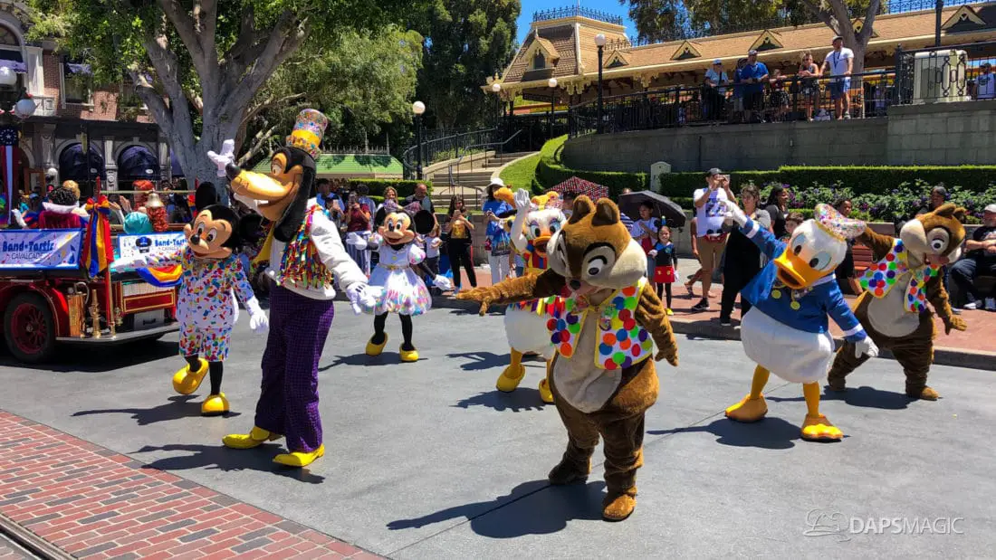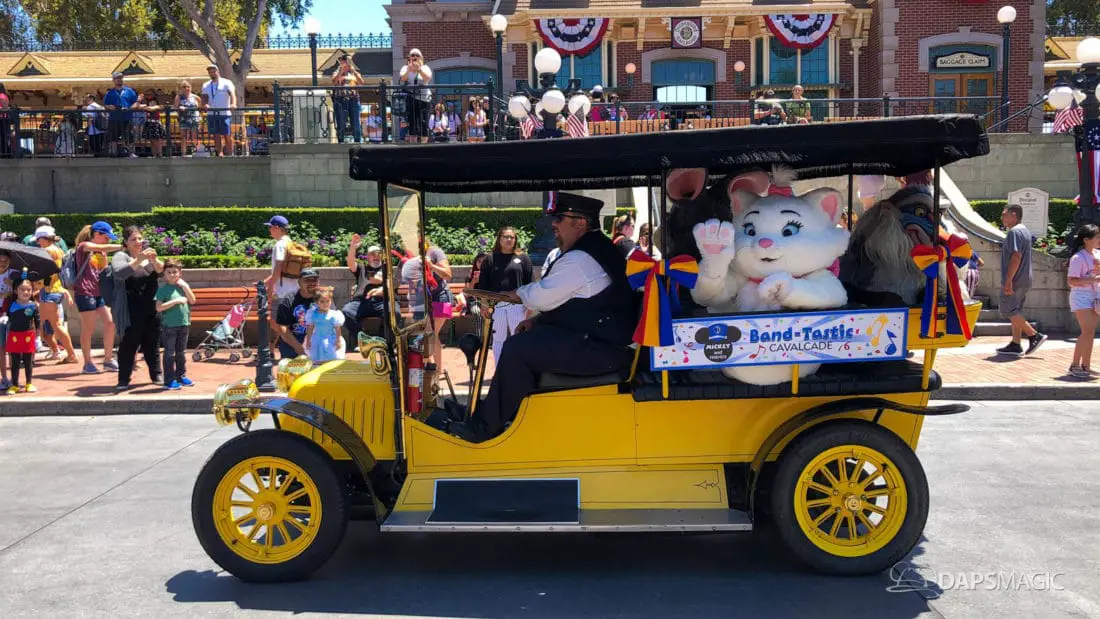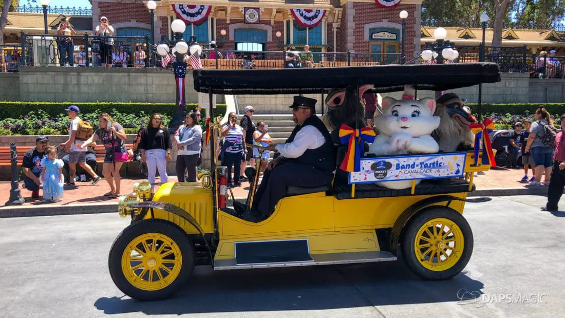 One day after the final performance of Mickey’s Soundsational Parade ended its run, Mickey and Friends Band-Tastic Cavalcade began making its way up and down the parade route through Disneyland. The cavalcade gives guests the opportunity to see Mickey and friends perform with the Disneyland Band all along the parade route.