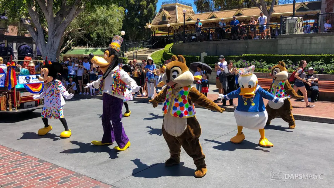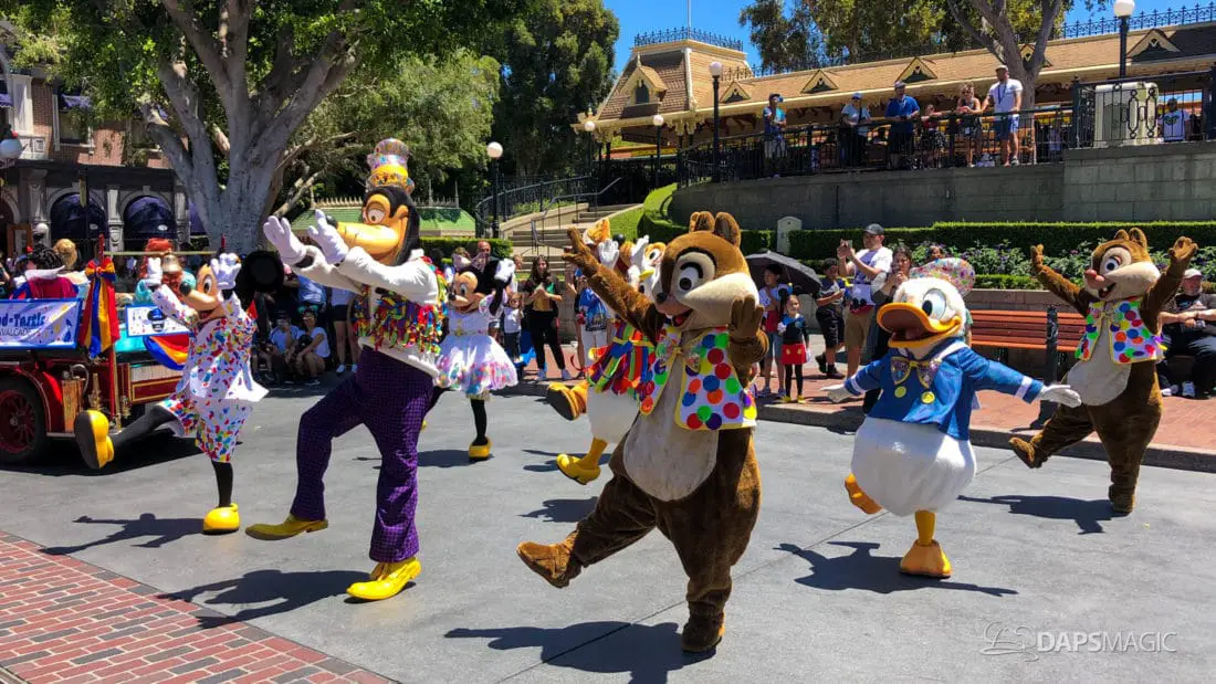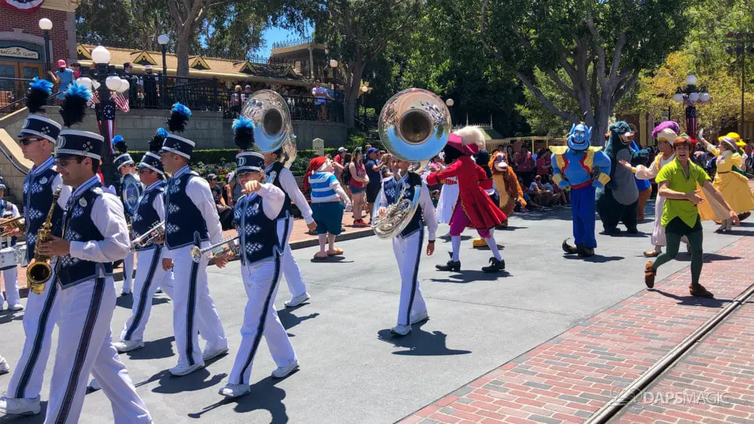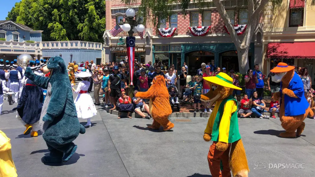 The entire experience is just a few minutes long. Different places along the parade route will get different experiences as the Disneyland Band performance different songs throughout the route. The Mickey and Friends Band-Tastic Cavalcade will continue to run until the Main Street Electrical Parade returns to Disneyland on August 2nd.