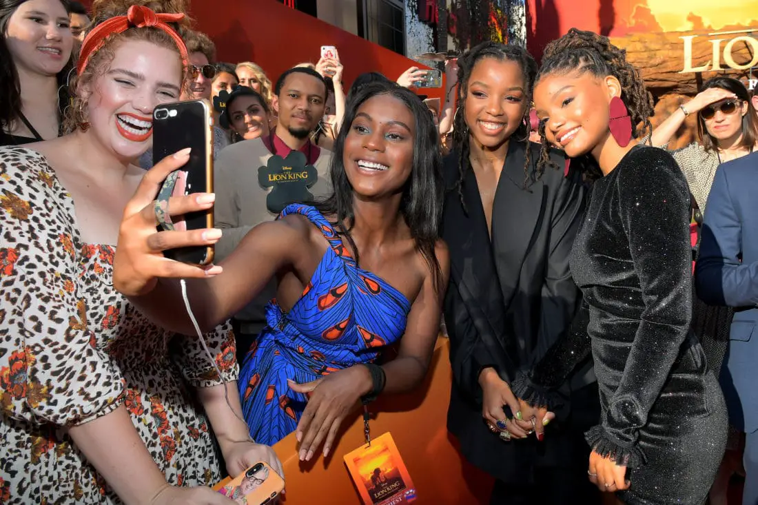 HOLLYWOOD, CALIFORNIA – JULY 09: Chloe Bailey (L) and Halle Bailey attend the World Premiere of Disney’s “THE LION KING” at the Dolby Theatre on July 09, 2019 in Hollywood, California. (Photo by Jesse Grant/Getty Images for Disney)