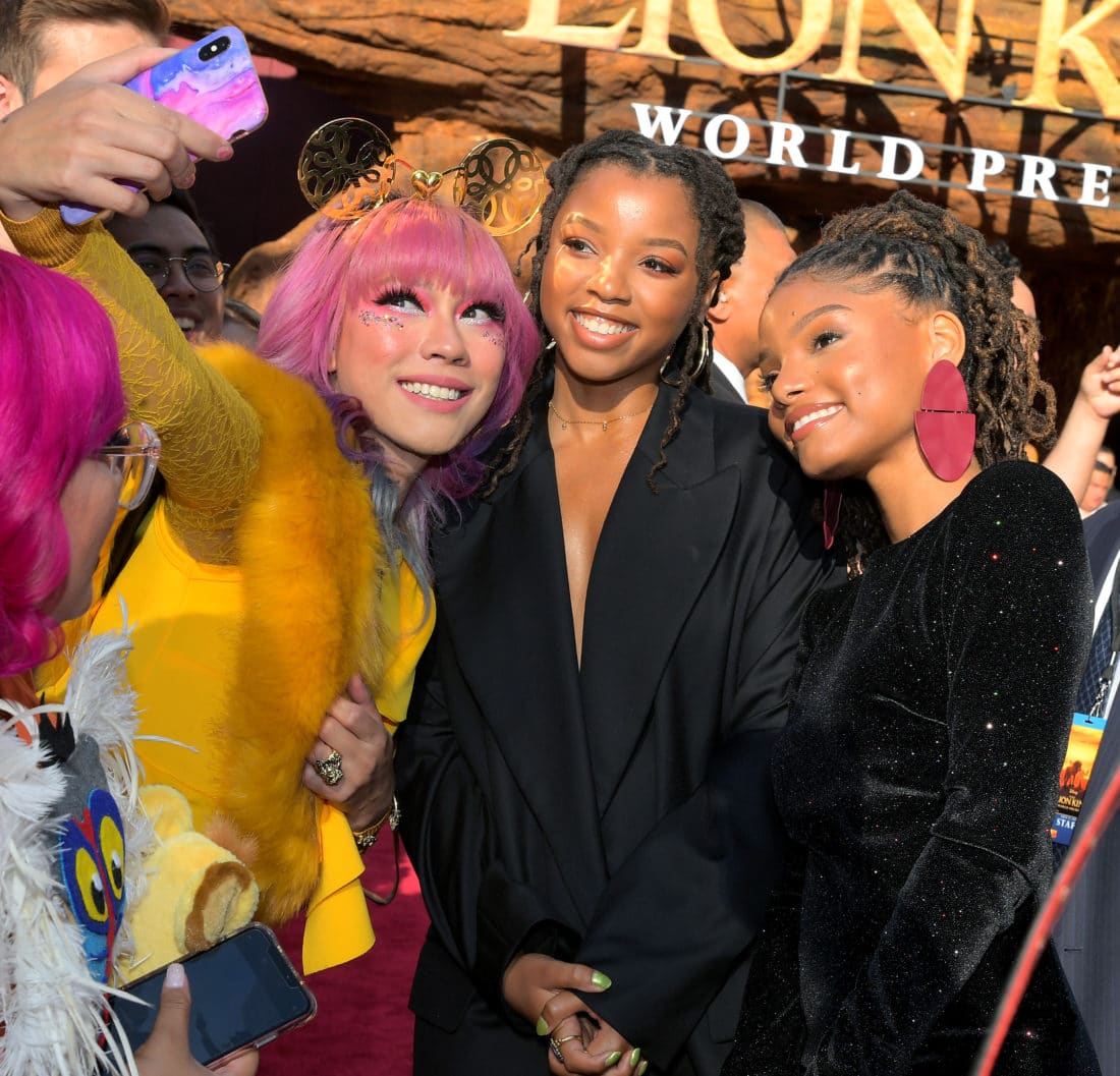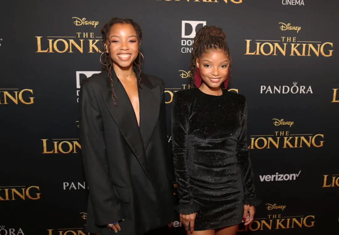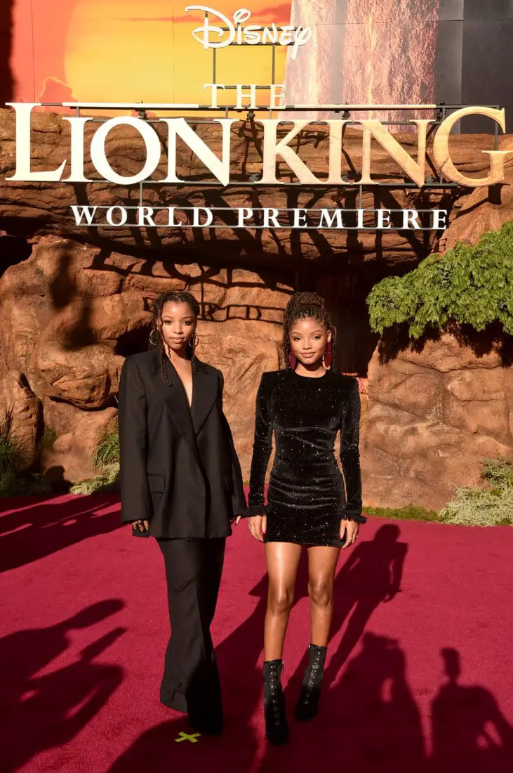 HOLLYWOOD, CALIFORNIA – JULY 09: Chloe Bailey (L) and Halle Bailey attend the World Premiere of Disney’s “THE LION KING” at the Dolby Theatre on July 09, 2019 in Hollywood, California. (Photo by Alberto E. Rodriguez/Getty Images for Disney)