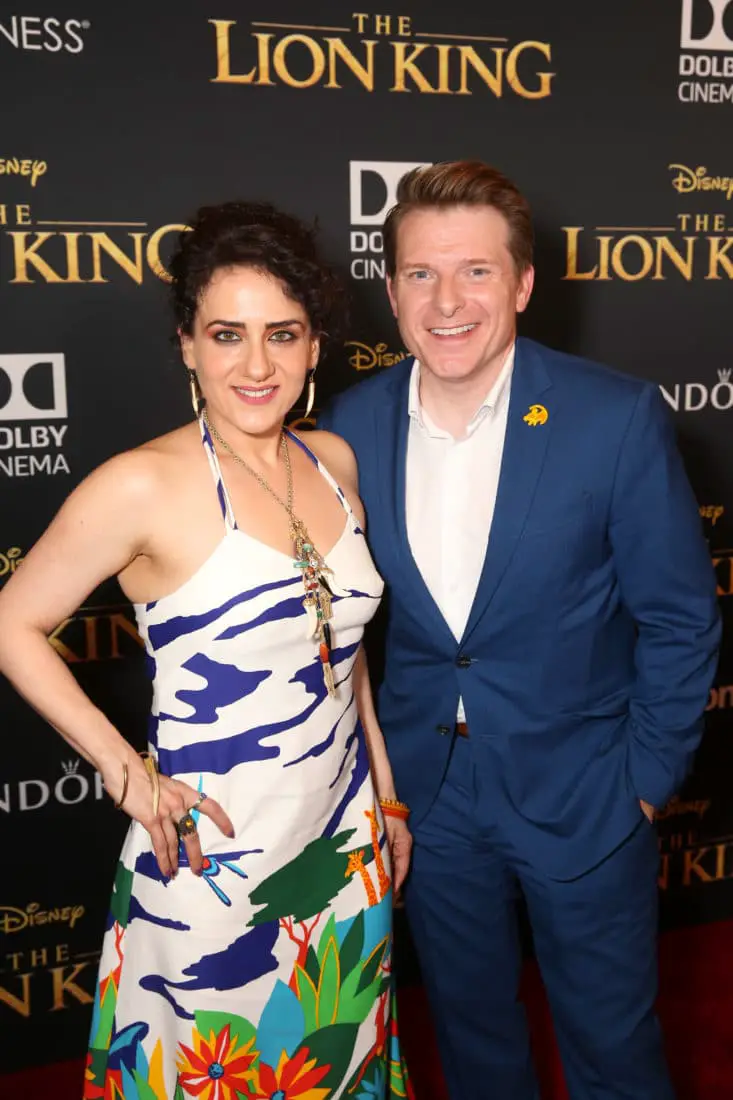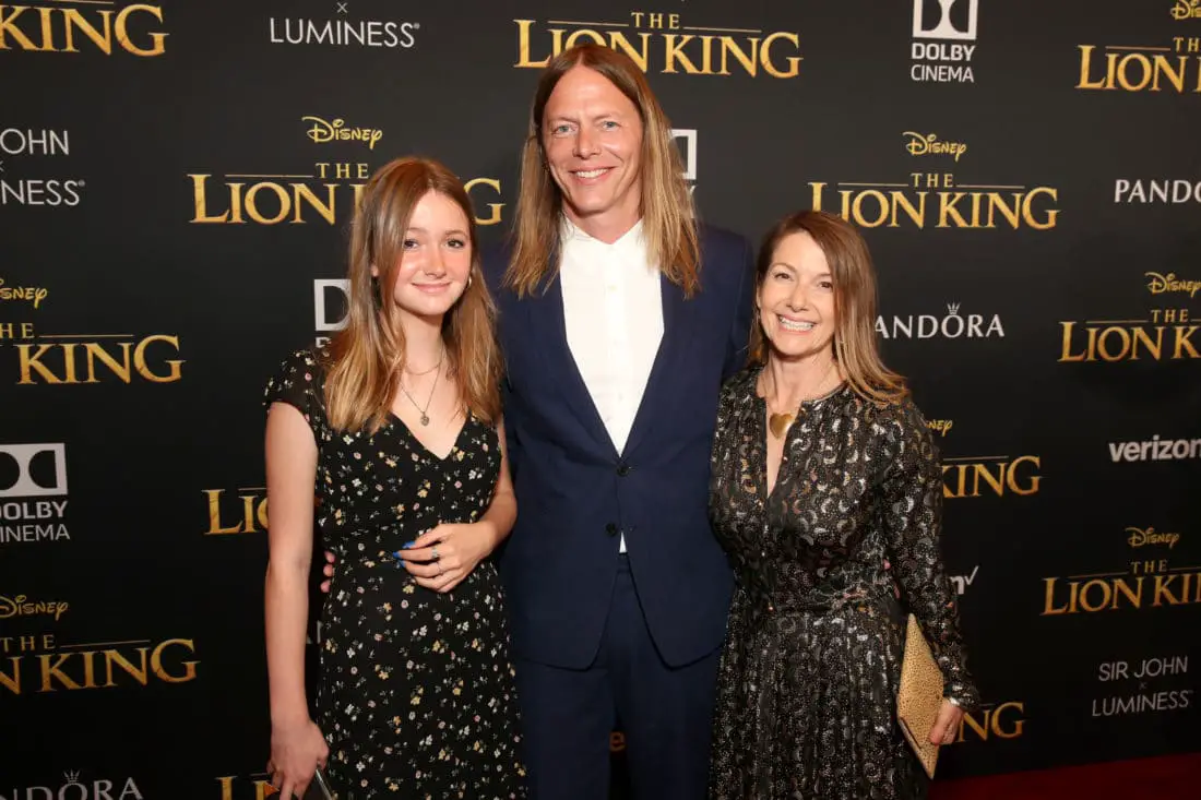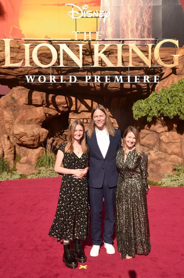 HOLLYWOOD, CALIFORNIA – JULY 09: James Chinlund (C) and Clare Crespo Chinlund (R) attend the World Premiere of Disney’s “THE LION KING” at the Dolby Theatre on July 09, 2019 in Hollywood, California. (Photo by Alberto E. Rodriguez/Getty Images for Disney)