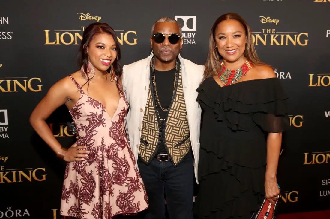 HOLLYWOOD, CALIFORNIA – JULY 09: (L-R) Michaela Jean Burton, LeVar Burton, and Stephanie Cozart Burton attend the World Premiere of Disney’s “THE LION KING” at the Dolby Theatre on July 09, 2019 in Hollywood, California. (Photo by Jesse Grant/Getty Images for Disney)