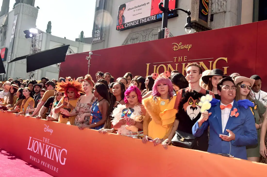 HOLLYWOOD, CALIFORNIA – JULY 09: Fans attend the World Premiere of Disney’s “THE LION KING” at the Dolby Theatre on July 09, 2019 in Hollywood, California. (Photo by Alberto E. Rodriguez/Getty Images for Disney)