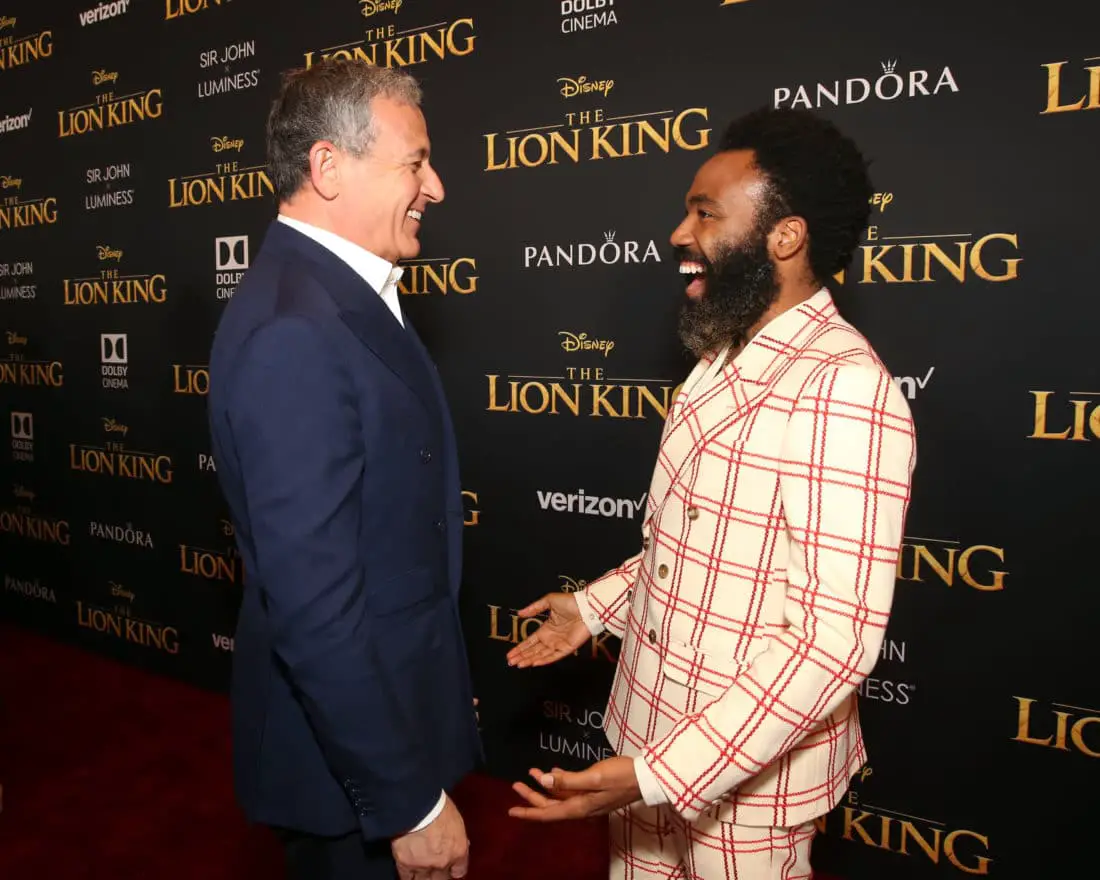HOLLYWOOD, CALIFORNIA – JULY 09: The Walt Disney Company Chairman and CEO Bob Iger (L) and Donald Glover attend the World Premiere of Disney’s “THE LION KING” at the Dolby Theatre on July 09, 2019 in Hollywood, California. (Photo by Jesse Grant/Getty Images for Disney)