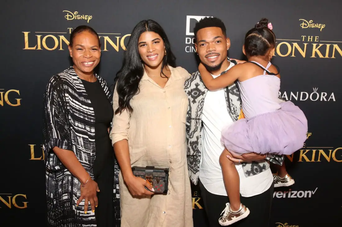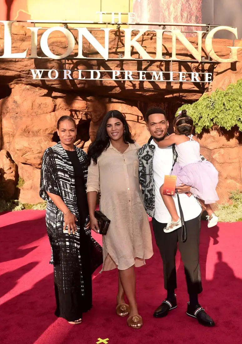HOLLYWOOD, CALIFORNIA – JULY 09: (L-R) Lisa Bennett, Kirsten Corley, Chance The Rapper, and Kensli Bennett attend the World Premiere of Disney’s “THE LION KING” at the Dolby Theatre on July 09, 2019 in Hollywood, California. (Photo by Alberto E. Rodriguez/Getty Images for Disney)
