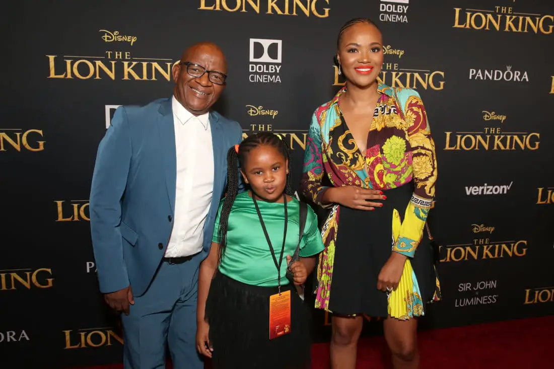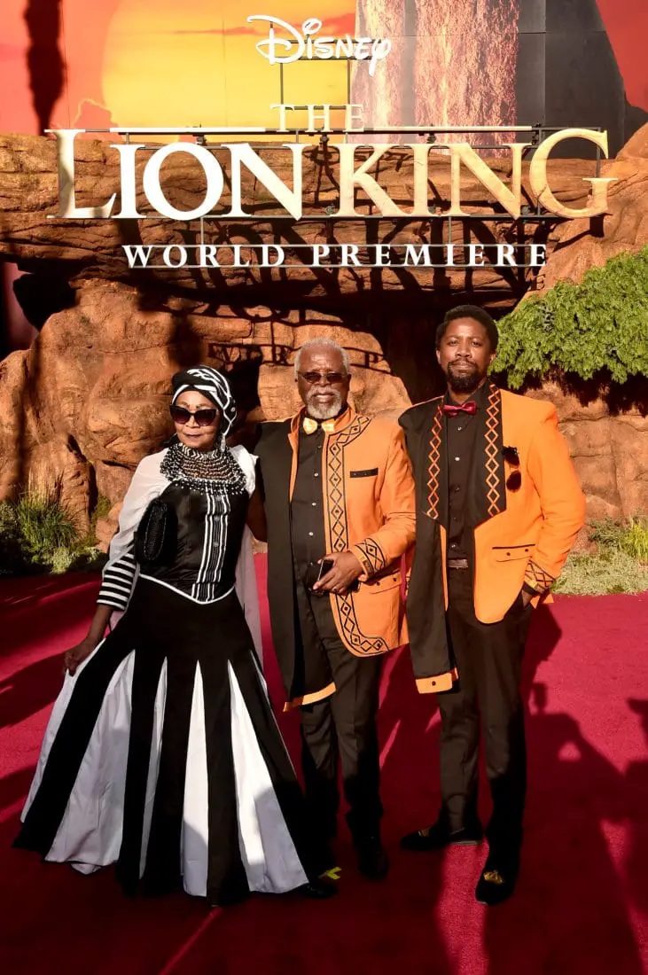 HOLLYWOOD, CALIFORNIA – JULY 09: (L-R) Mandi Kani, John Kani, and Atandwa Kani attend the World Premiere of Disney’s “THE LION KING” at the Dolby Theatre on July 09, 2019 in Hollywood, California. (Photo by Alberto E. Rodriguez/Getty Images for Disney)