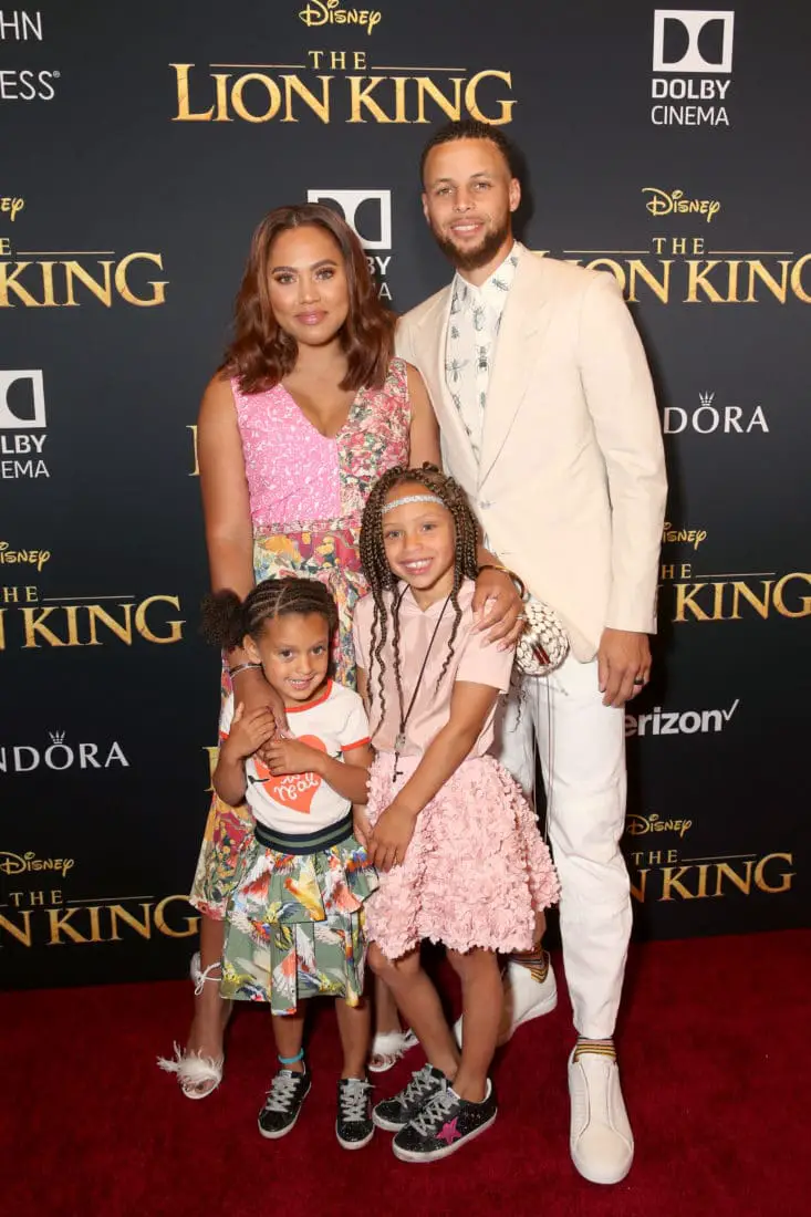 HOLLYWOOD, CALIFORNIA – JULY 09: (L-R) Ryan Curry, Ayesha Curry, Riley Curry, and Stephen Curry attend the World Premiere of Disney’s “THE LION KING” at the Dolby Theatre on July 09, 2019 in Hollywood, California. (Photo by Alberto E. Rodriguez/Getty Images for Disney)