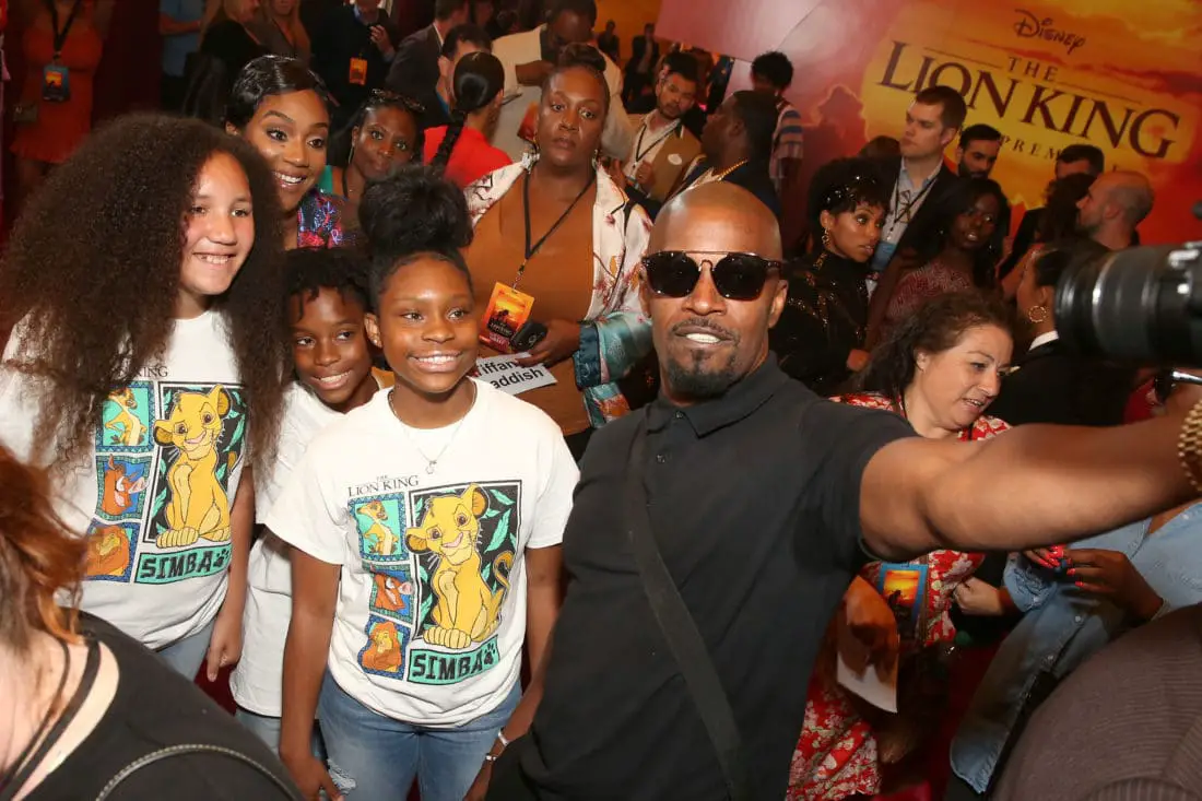 HOLLYWOOD, CALIFORNIA – JULY 09: Jamie Foxx (C) attends the World Premiere of Disney’s “THE LION KING” at the Dolby Theatre on July 09, 2019 in Hollywood, California. (Photo by Alberto E. Rodriguez/Getty Images for Disney)