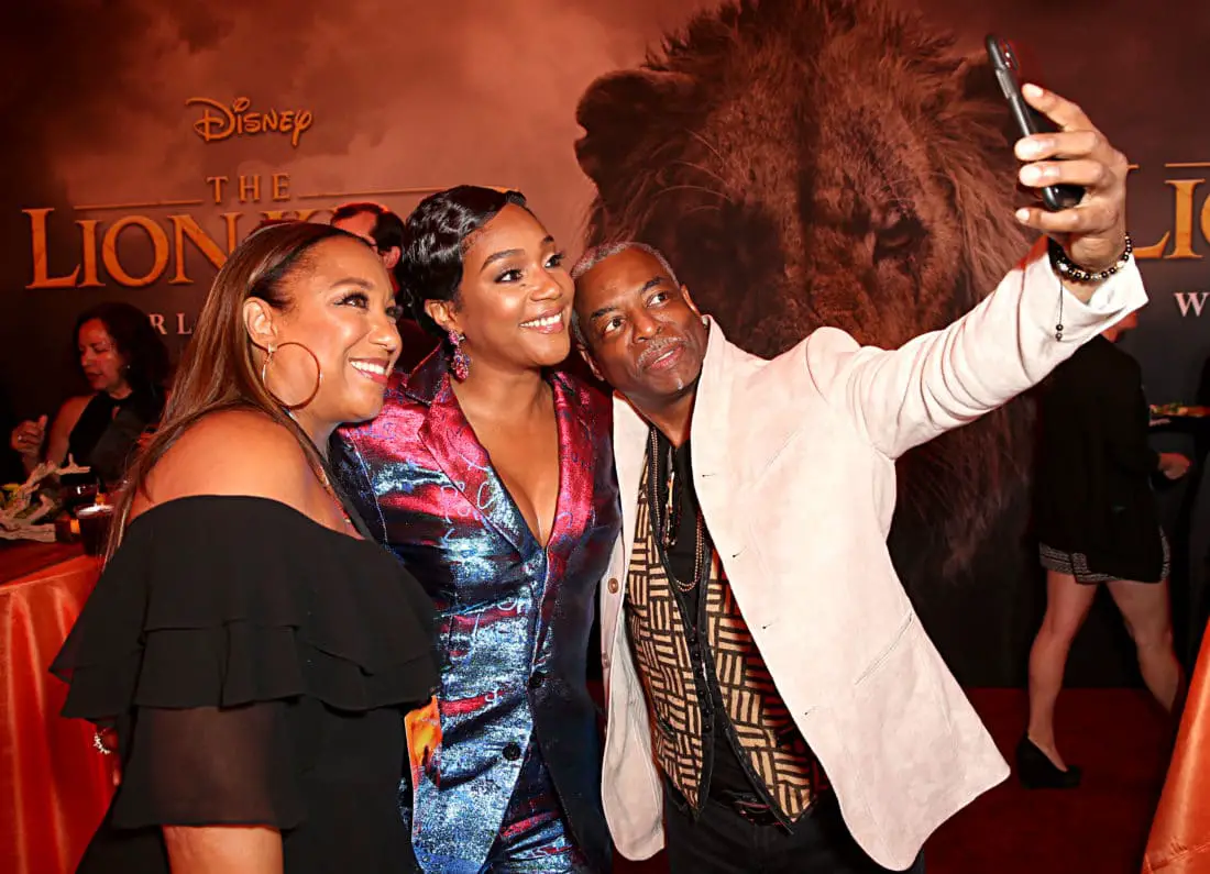 HOLLYWOOD, CALIFORNIA – JULY 09: Stephanie Cozart Burton, Tiffany Haddish and LeVar Burton attend the World Premiere of Disney’s “THE LION KING” at the Dolby Theatre on July 09, 2019 in Hollywood, California. (Photo by Jesse Grant/Getty Images for Disney)