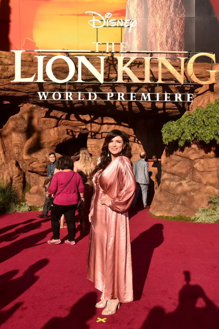HOLLYWOOD, CALIFORNIA – JULY 09: Gina Carano attends the World Premiere of Disney’s “THE LION KING” at the Dolby Theatre on July 09, 2019 in Hollywood, California. (Photo by Alberto E. Rodriguez/Getty Images for Disney)